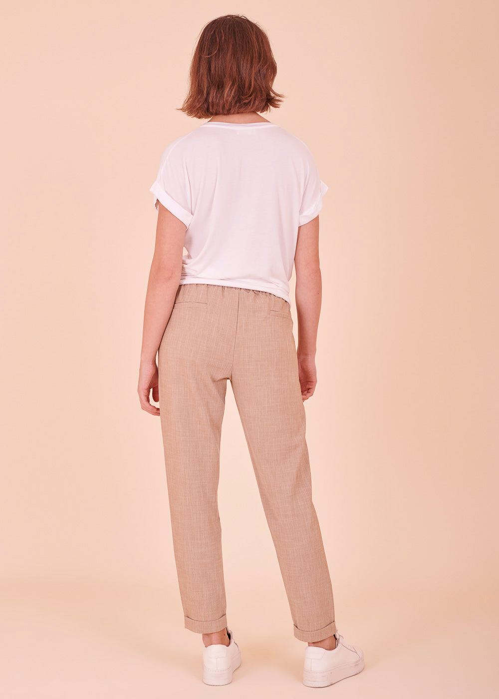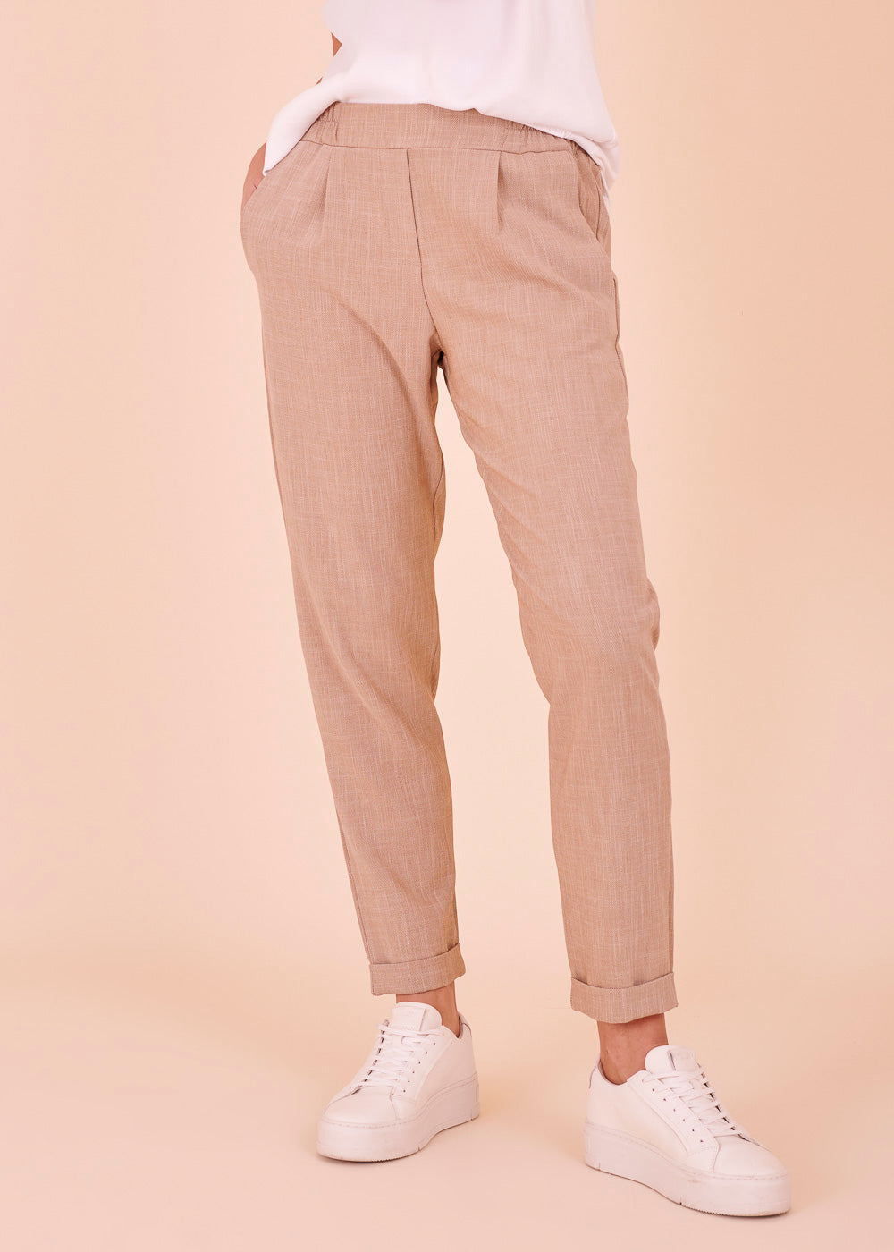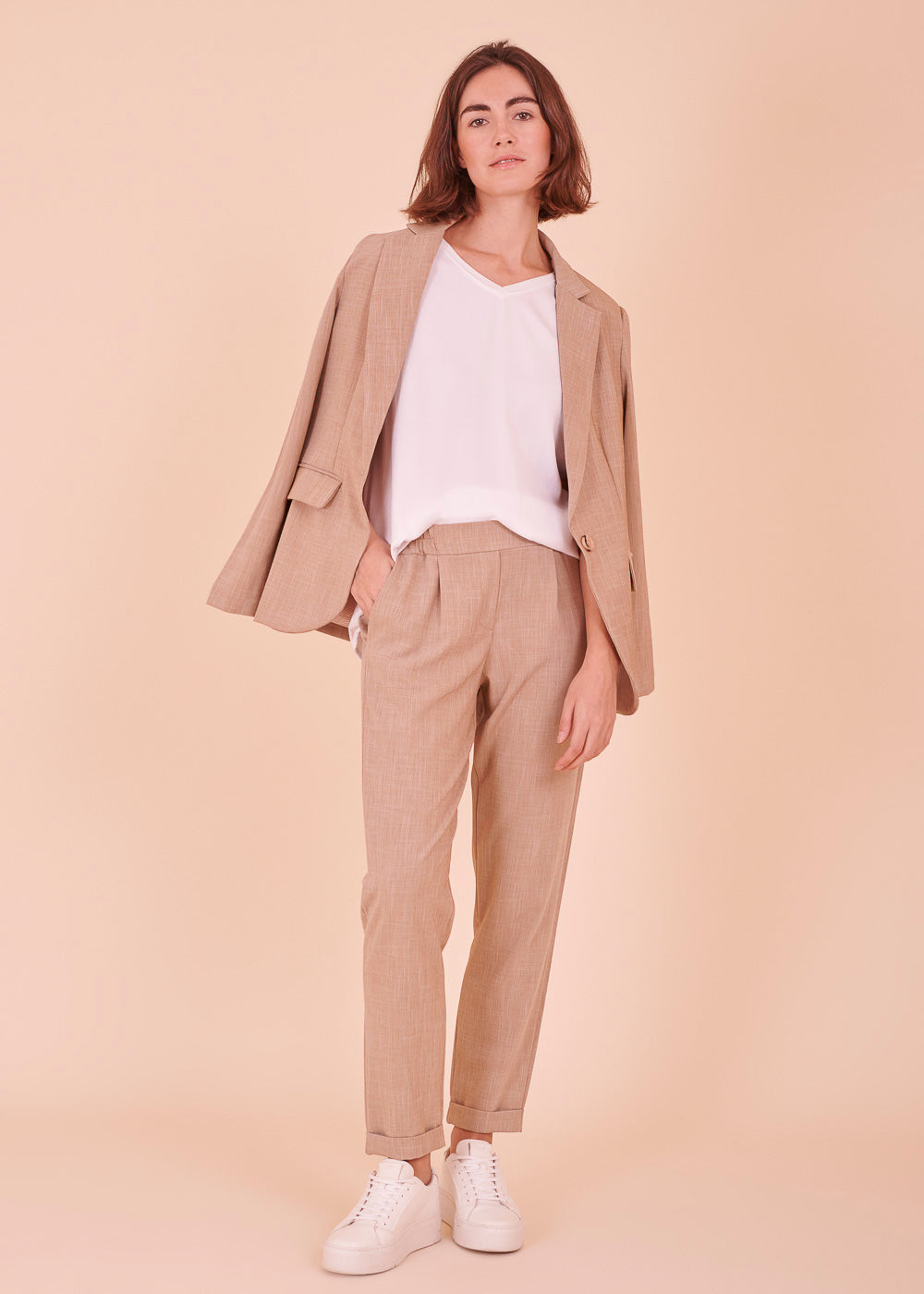 Tolle Bundfaltenhose mit geradem Bein. Die Hose sitzt besonders lässig durch seinen Gummizug und hat seitliche Eingriffstaschen. Besonders toll in Kombination mit dem passenden Blazer und einer weißen Bluse. Einfach lässig und stylisch.