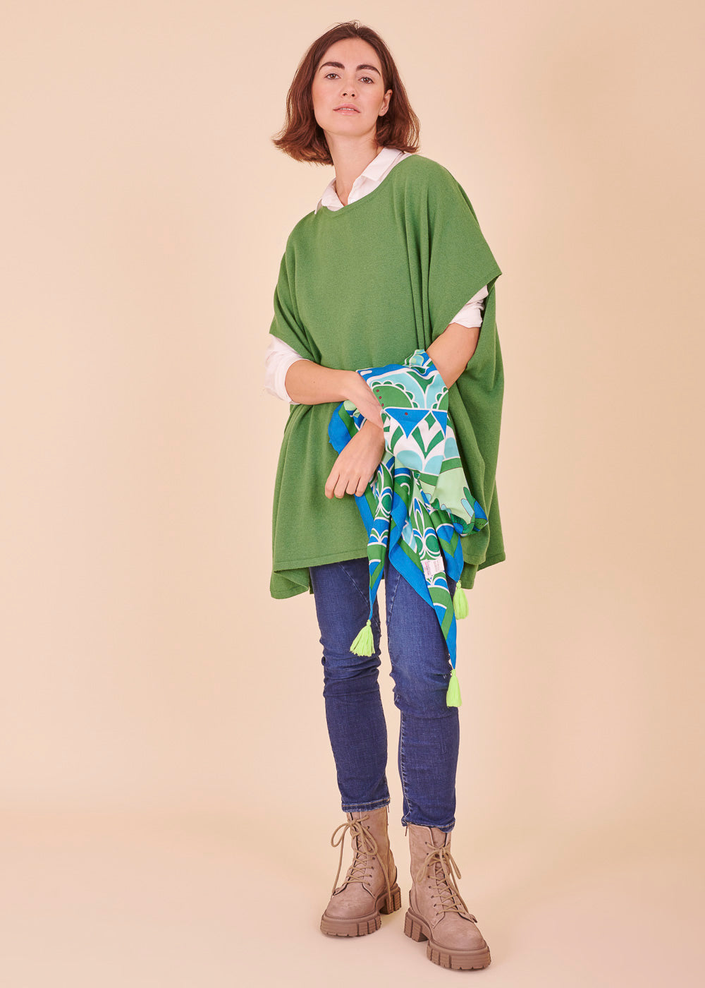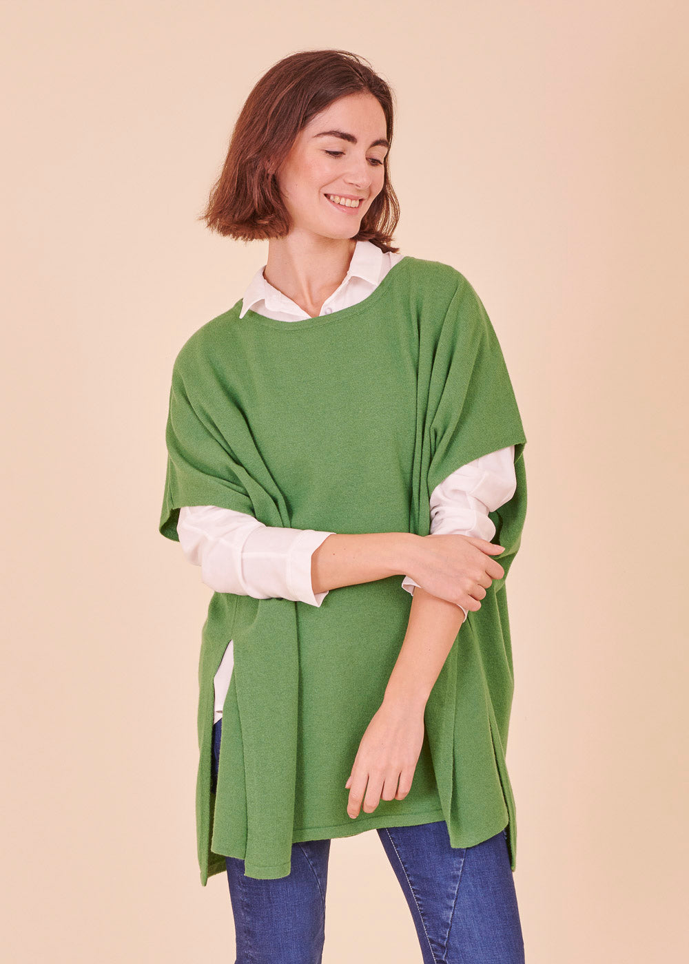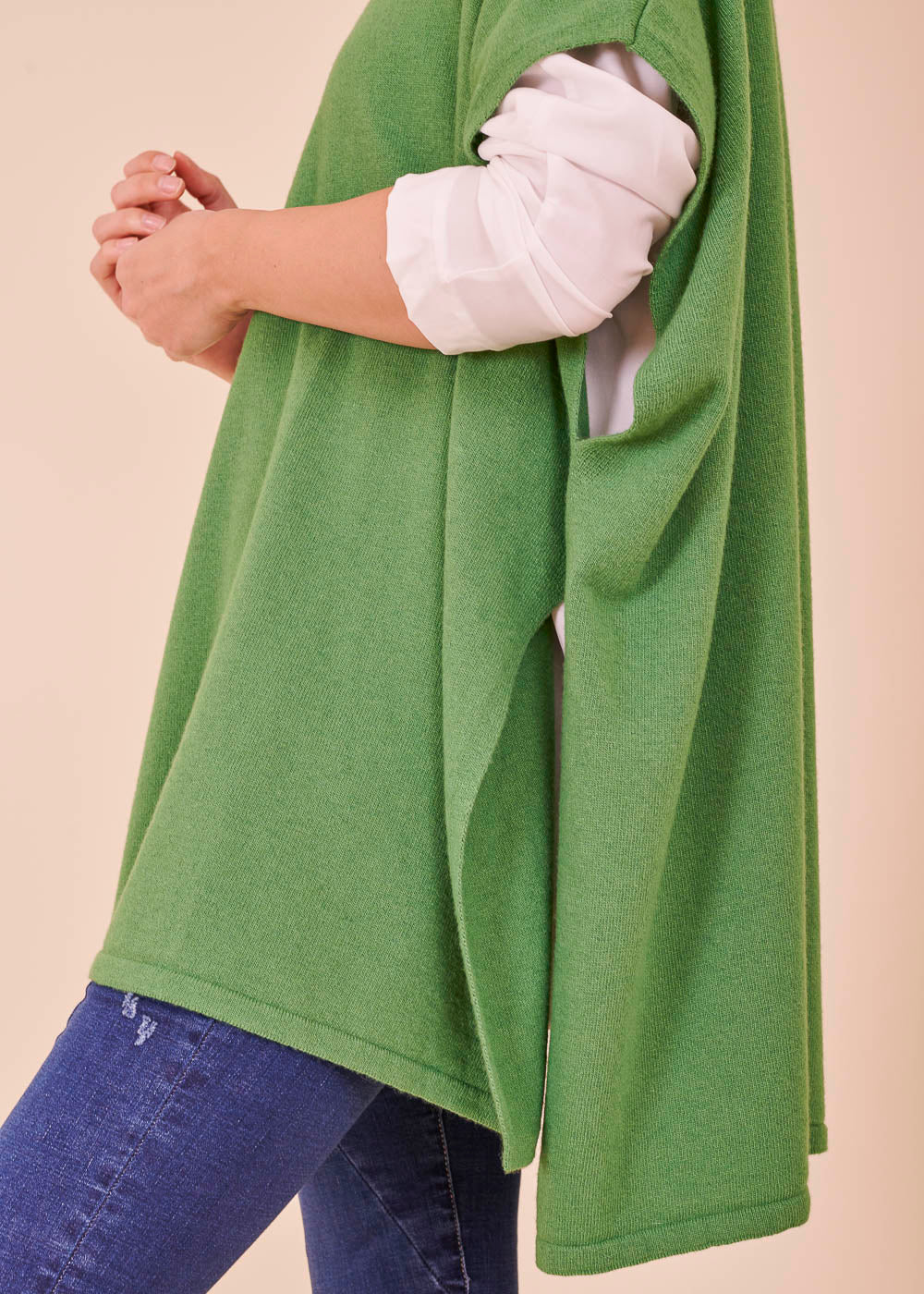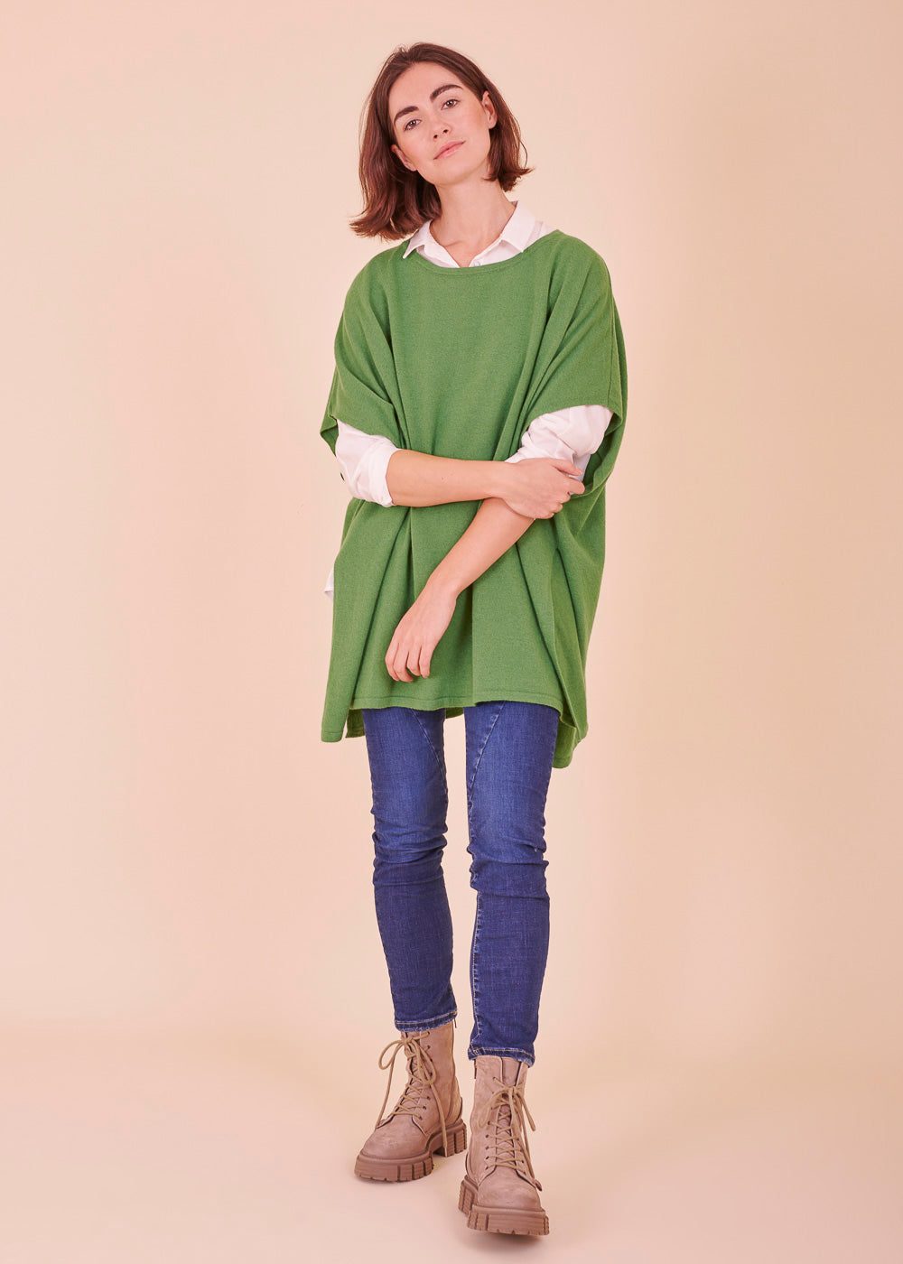 Unser geliebter Poncho mit kurzen Armen ist der perfekte Begleiter zum drüber werfen. Durch sein Unifarbenes Design lässt er sich wunderbar kombinieren und macht dabei noch eine richtig Gute und frische Figur. Mit diesem extravaganten Strickstück sind wir für alle Fashion-Fälle gewappnet.