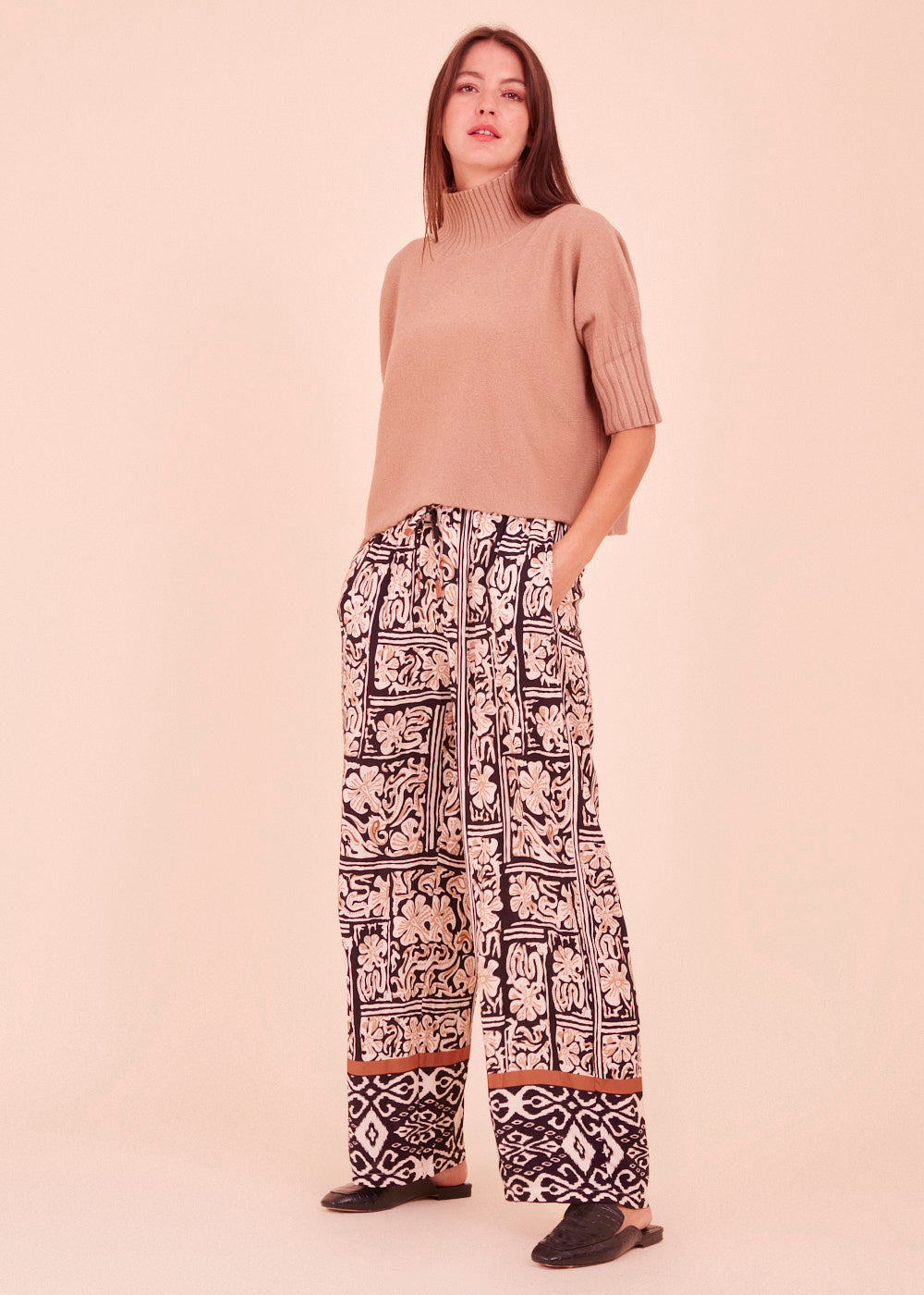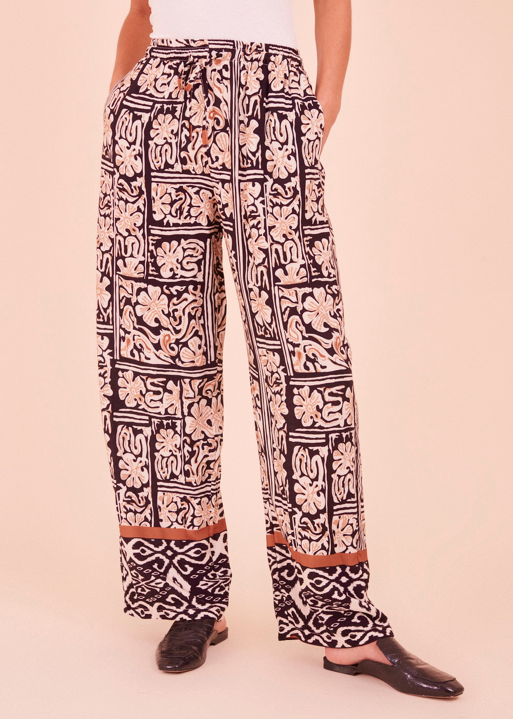 Lust auf einen neuen Look? Dann ist diese Printhose dein neues Lieblingsstück. Das leicht fließende Viskosematerial trägt sich  wunderbar auf deiner Haut. Der Gummizug schmiegt sich dabei angenehm an deinen Körper und engt dich nicht ein. Wir haben auch die  passenden Bluse in unserem Shop.