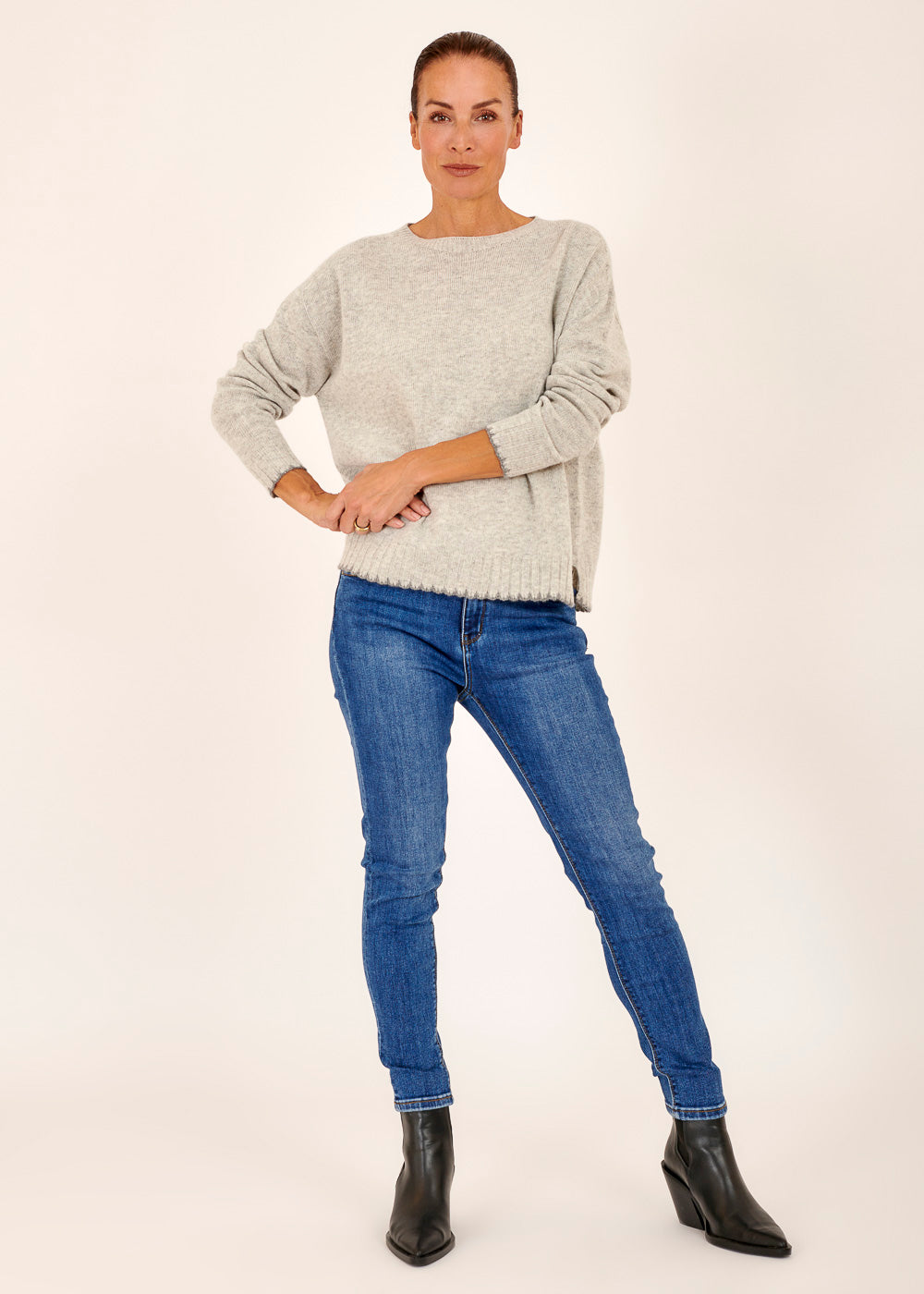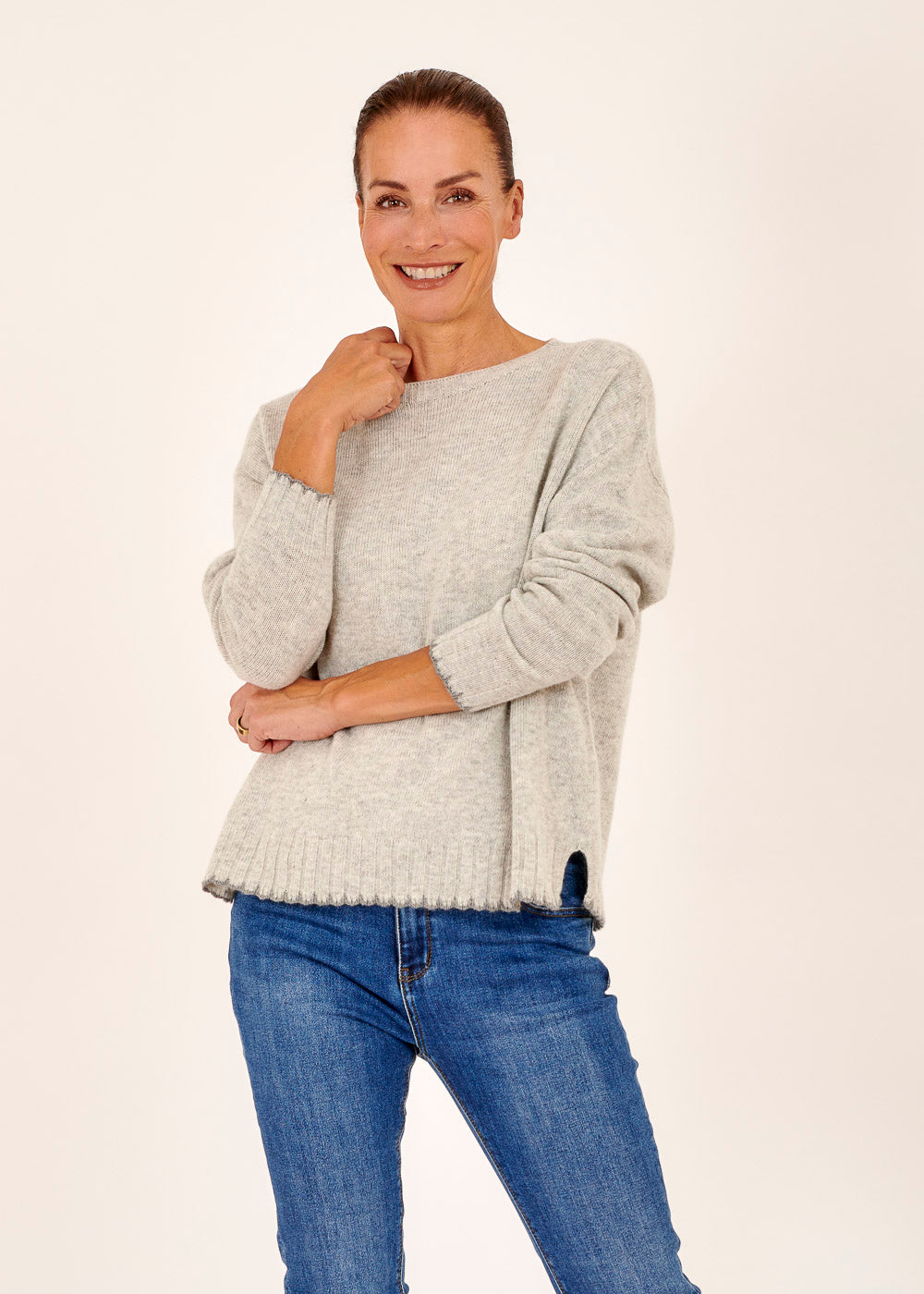 Was diesen Pullover wirklich auszeichnet, sind die erstaunlichen Kontrastbündchen. Während der Hauptteil des Pullovers in einer klassischen Farbe gehalten ist, setzen die Kontrastbündchen an den Ärmeln und am Saum einen bemerkenswerten Akzent. Die subtilen Kontraste verleihen dem Pullover eine unverwechselbare und raffinierte Note. Diese kleinen Akzente machen den Pullover zu einem vielseitigen Stück, das gleichzeitig auffällt und sich leicht in verschiedene Outfits integrieren lässt.