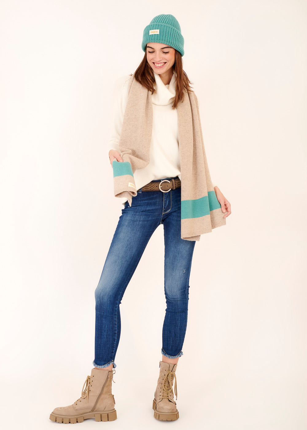 Das Model trägt bei einer Körpergröße von 179 cm die Konfektionsgröße S.