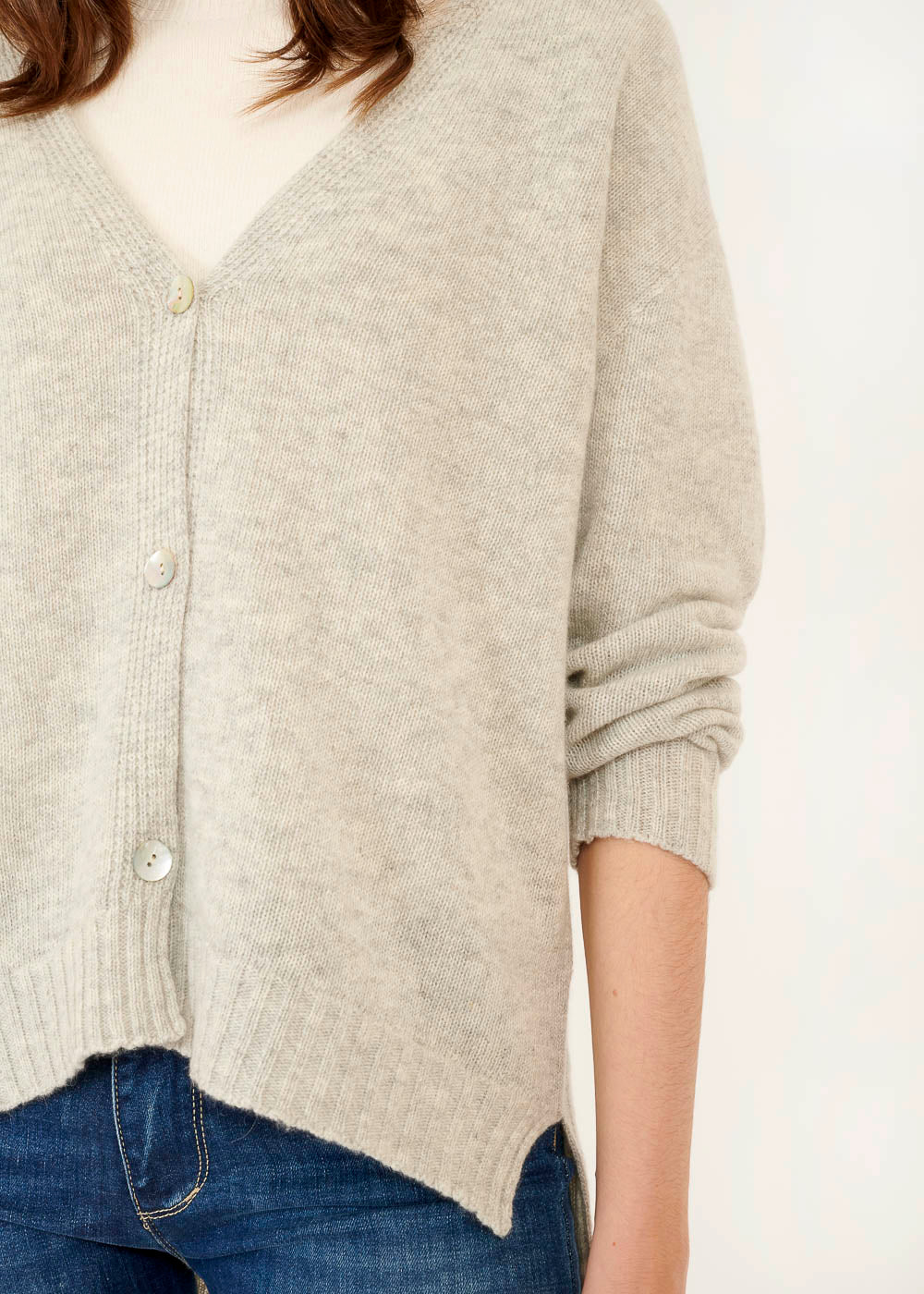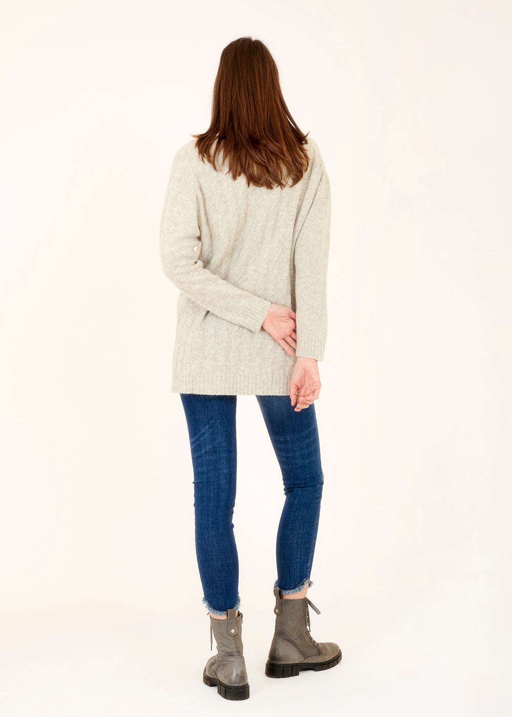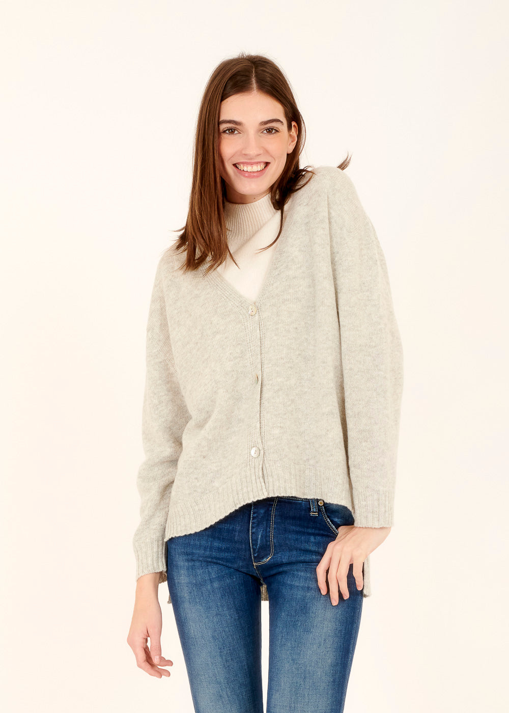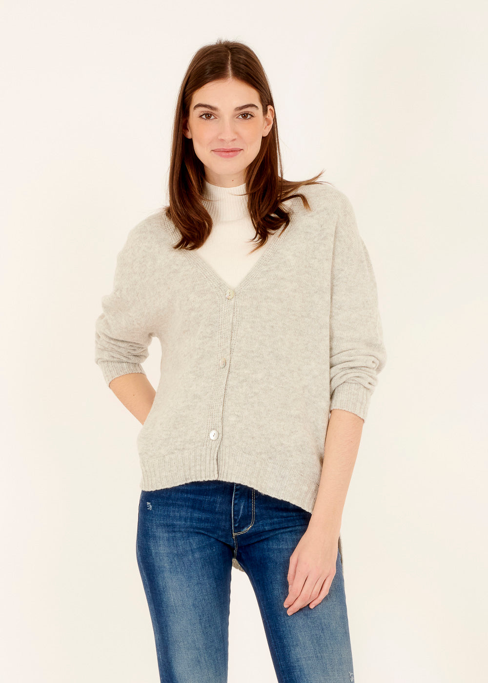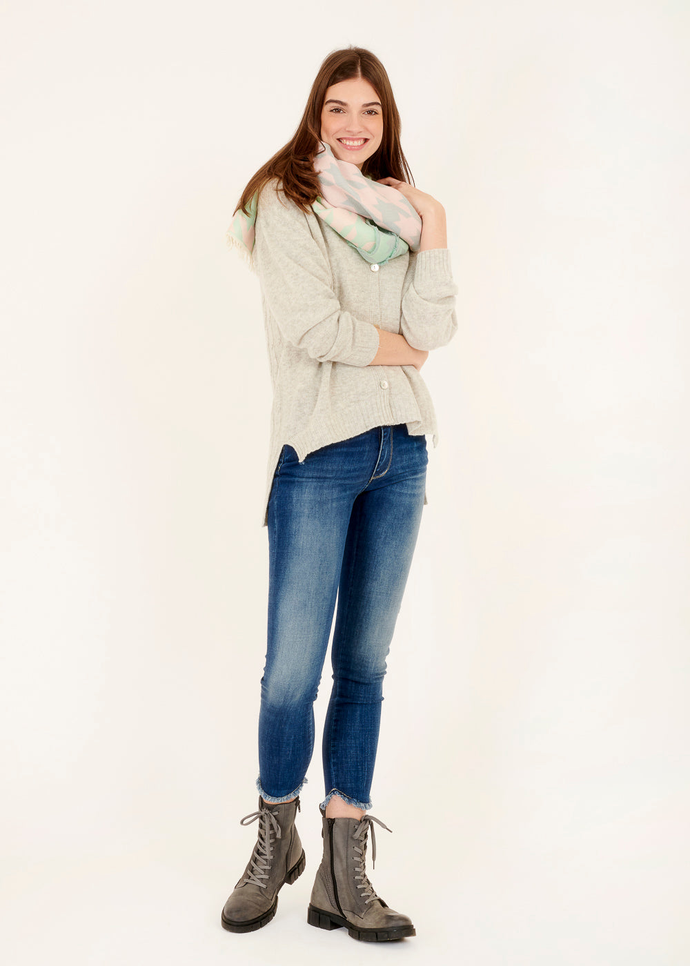 Unser lässiger Cardigan mit Zopfmuster ist ein wahrer Blickfang. Kurz und kastenförmig geschnittene Strickjacke mit langen Armen aus unserem Bestseller Garn. Sie hat ein Rippenbündchen an den Ärmeln und am Saum. Durch die Frontknöpfe lässt sich diese Jacke wunderbar geschlossen tragen. Zum darunter tragen empfehlen wir dir unsere Basic Tops. Kuschelig weicher Tragekomfort mit absoluter Wohlfühlgarantie.