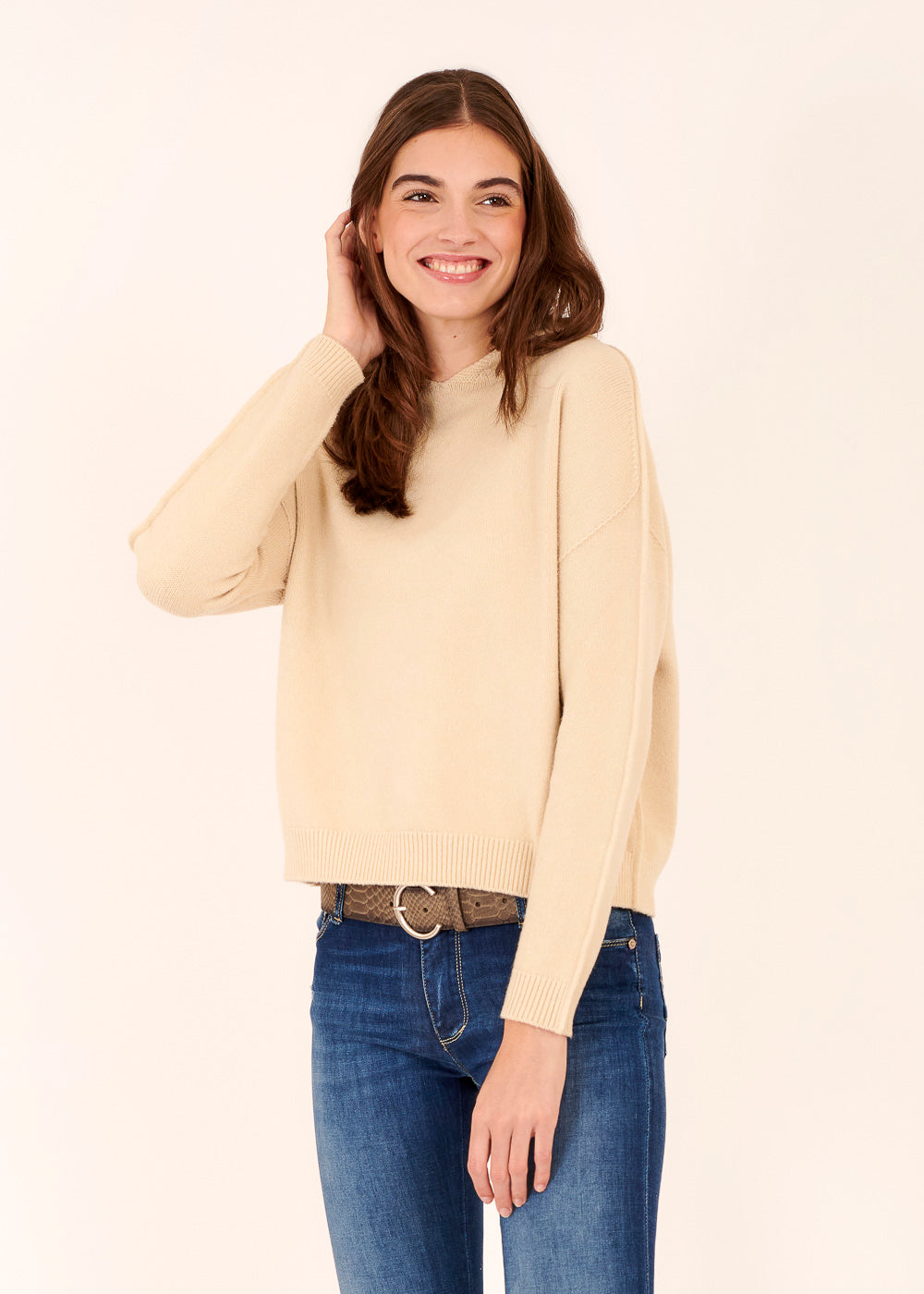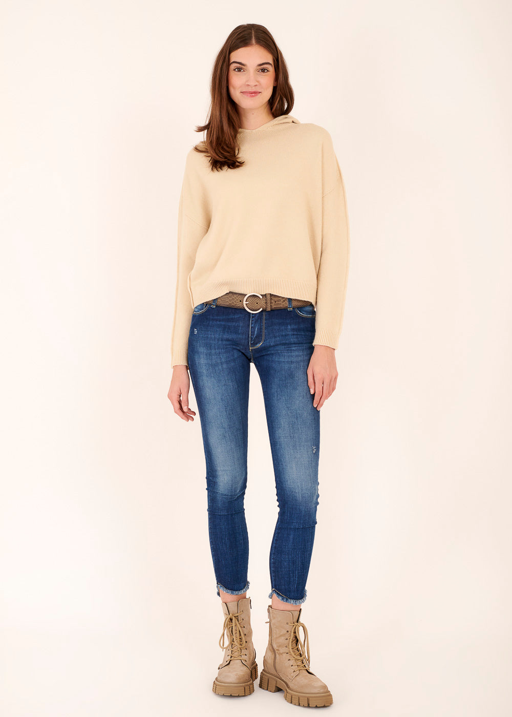 Bequemer Kapuzenpullover mit gerippten Bündchen.. Der Pullover ist kuschelig weich und einen geraden Schnitt. Einfach überwerfen und wohlfühlen.
