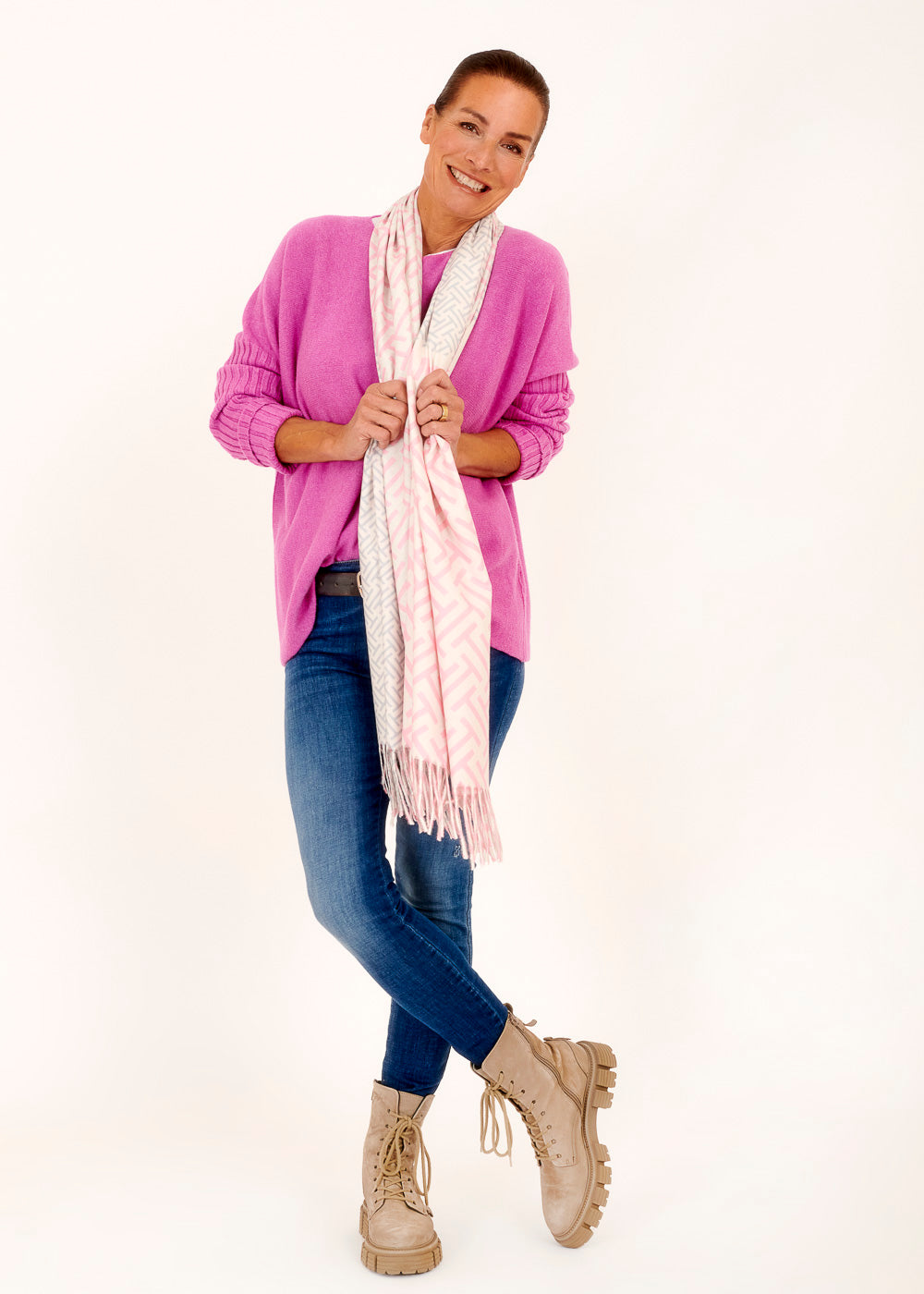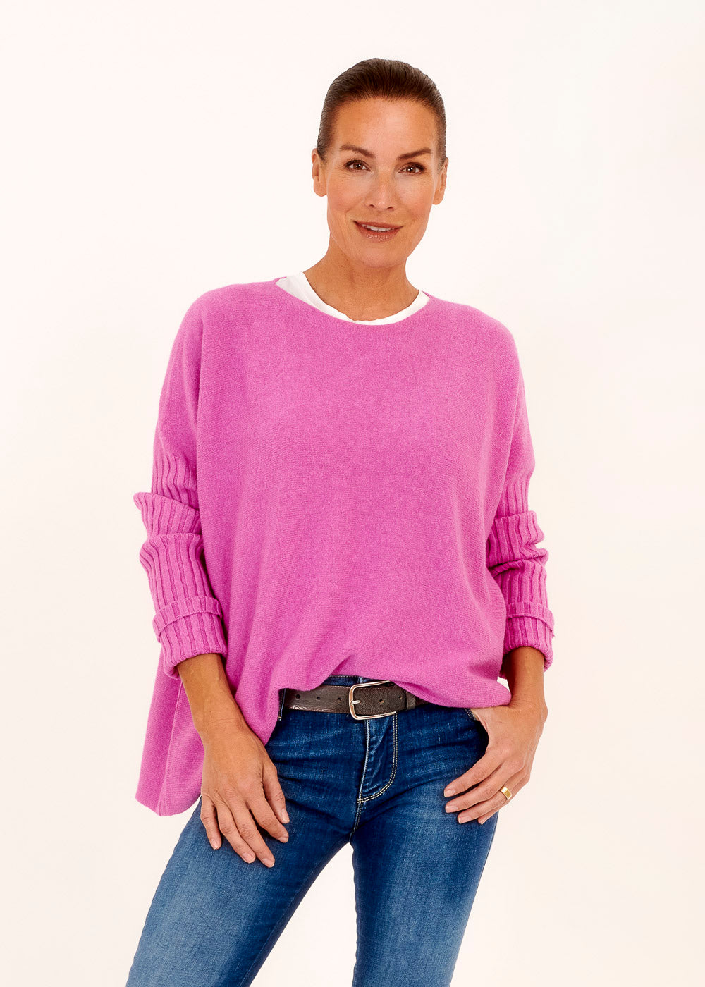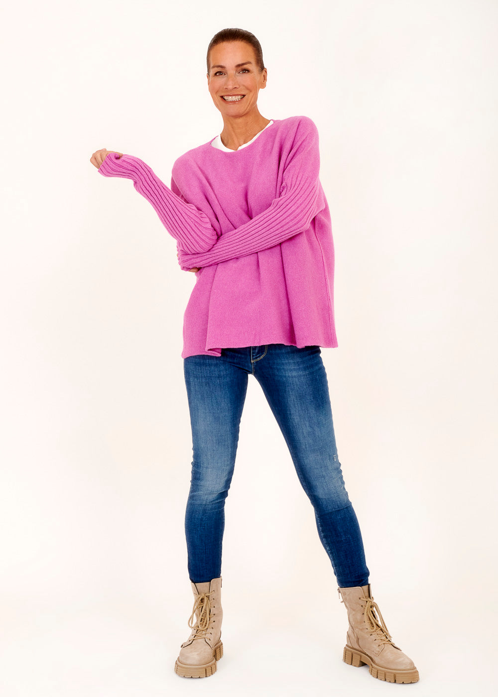 Unser kuschelig, lässige Pullover bietet das Beste aus beiden Welten - unschlagbare Gemütlichkeit und unverwechselbaren Stil. Das angenehme Material ist weich auf deiner Haut und der Fuxia Ton lässt sich wunderbar stylen. Egal, ob du im Büro, bei einem Treffen mit Freunden oder an einem gemütlichen Abend zu Hause tragen - dieser Pullover ist immer die richtige Wahl.