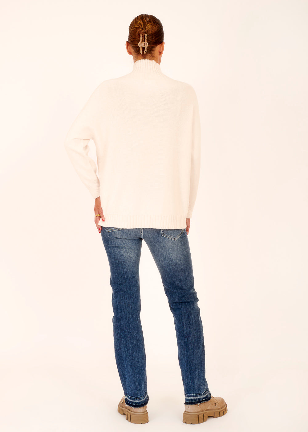 Unser kuschelig, lässige Pullover mit Turtleneck bietet das Beste aus beiden Welten - unschlagbare Gemütlichkeit und unverwechselbaren Stil. Das angenehme Material ist weich auf deiner Haut und der edle Panna Ton lässt sich wunderbar stylen. Egal, ob du im Büro, bei einem Treffen mit Freunden oder an einem gemütlichen Abend zu Hause tragen - dieser Pullover ist immer die richtige Wahl.
