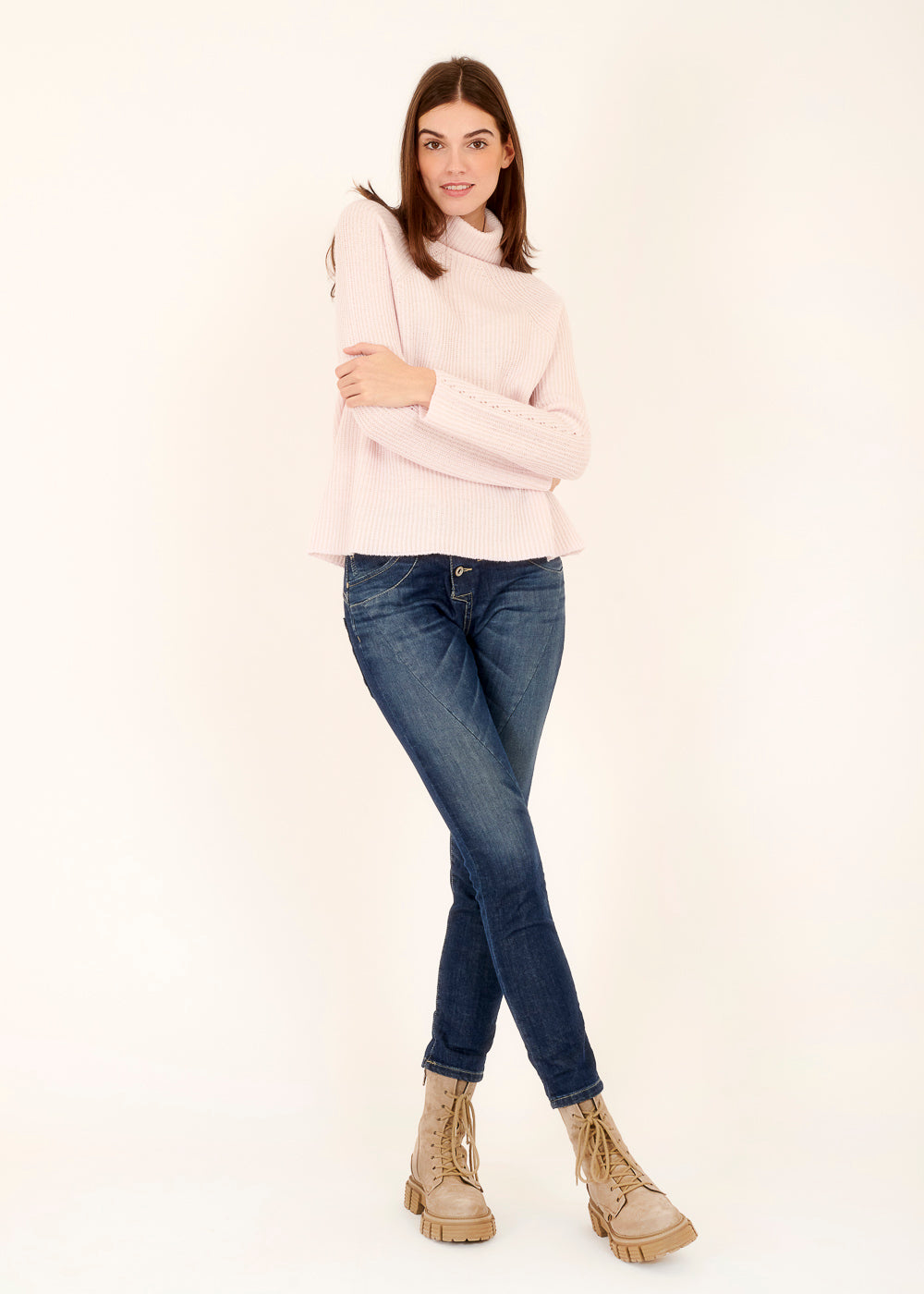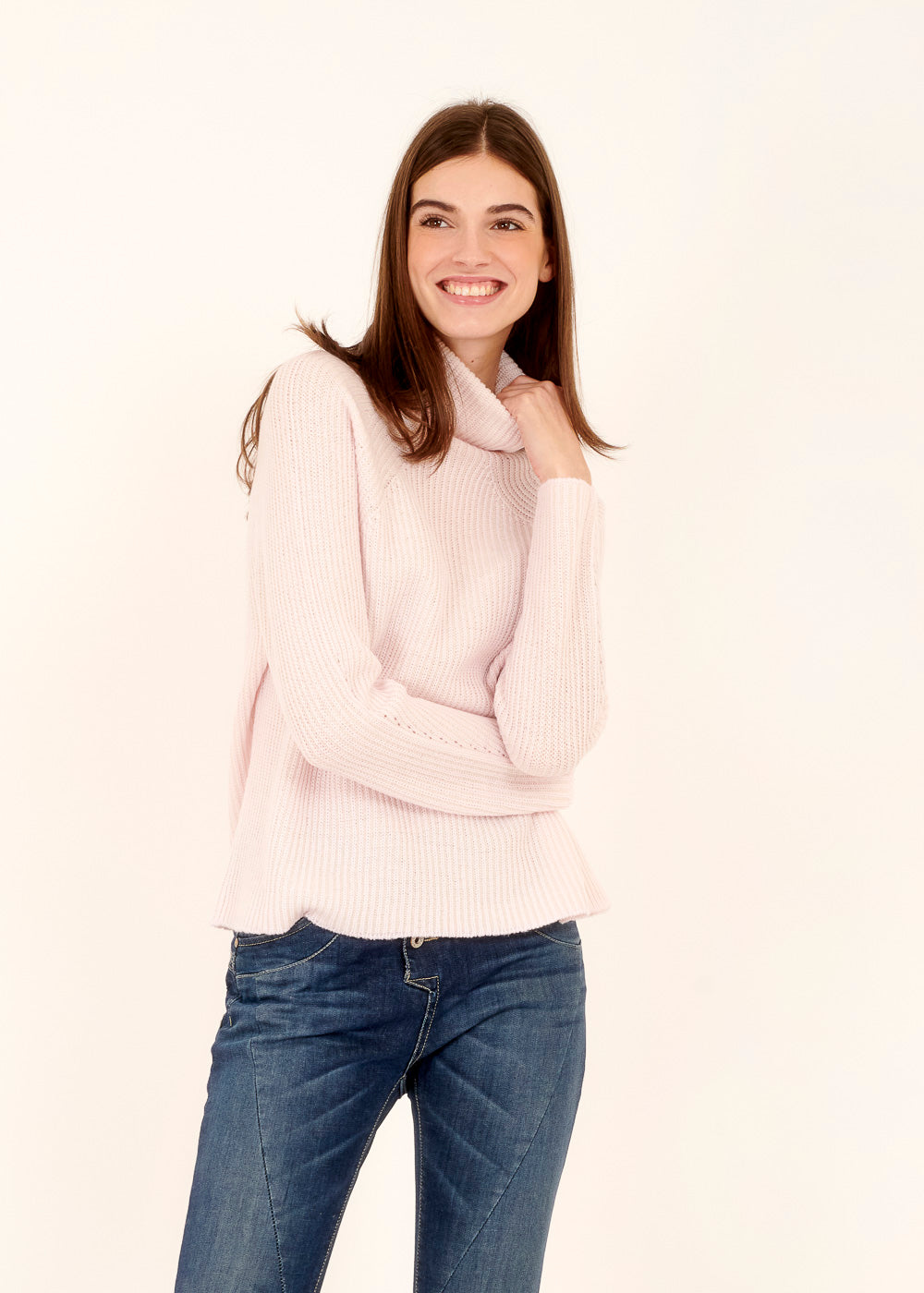 Die zarte Rosa-Farbe verleiht diesem Pullover eine feminine Ausstrahlung, während das schlichte Design ihn zu einem einfach zu kombinierenden Kleidungsstück macht. Die hochwertige Verarbeitung gewährleistet Langlebigkeit und Komfort.
