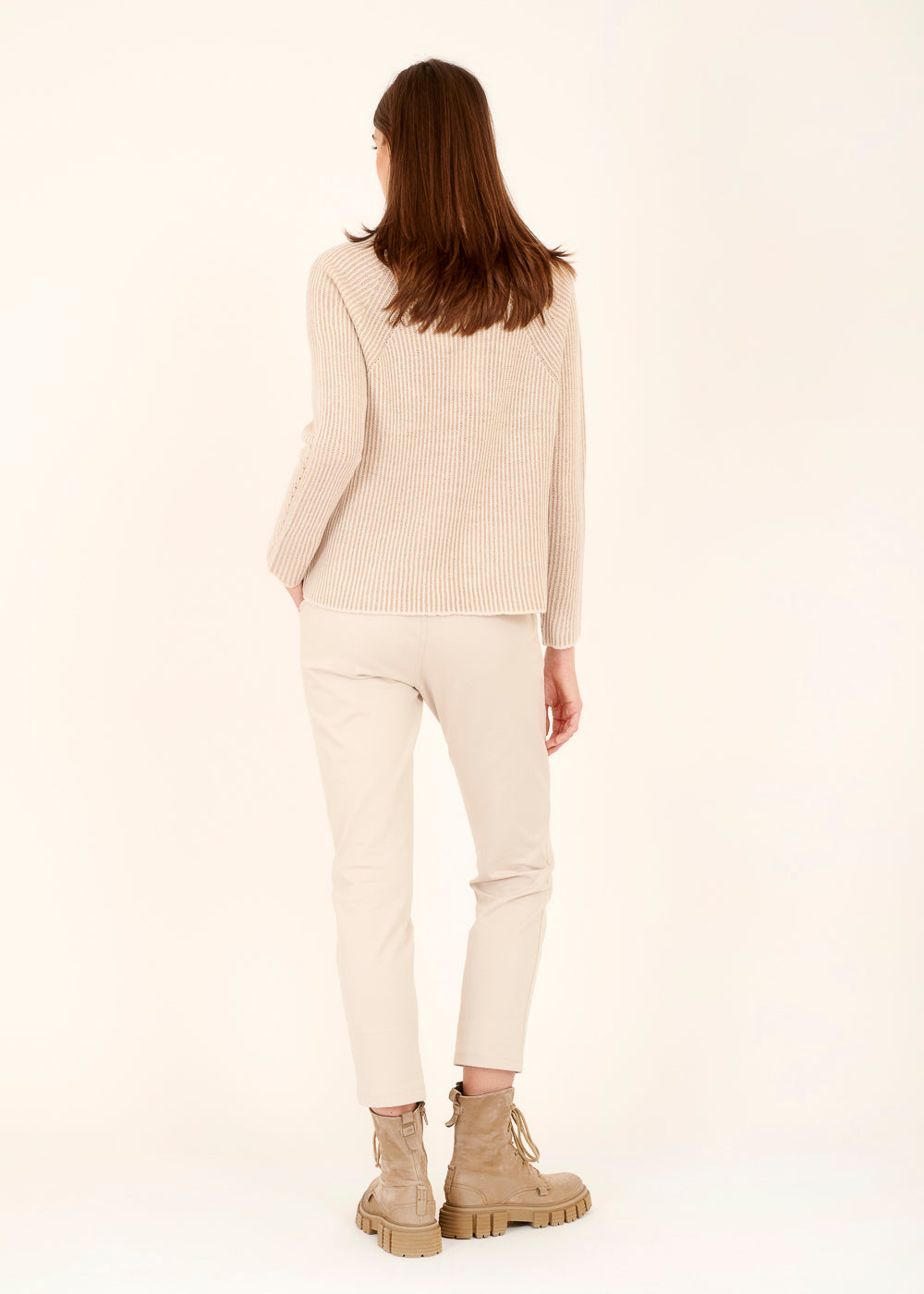 Unser edler Rollkragenpullover ist das perfekte Kleidungsstück für kühlere Tage. Mit seinem besonderen Strickmuster und seiner Beigen zeitlosen Farbe, lässt er sich zu sämtlichen Outfits kombinieren. Die abgesetzte weiße Farbe geben dem Pullover eine zusätzliche frische Note. Das weiche und hochwertige Material sorgt für ein angenehmes Tragegefühl, während der Schnitt eine schmeichelhafte Passform gewährleistet.