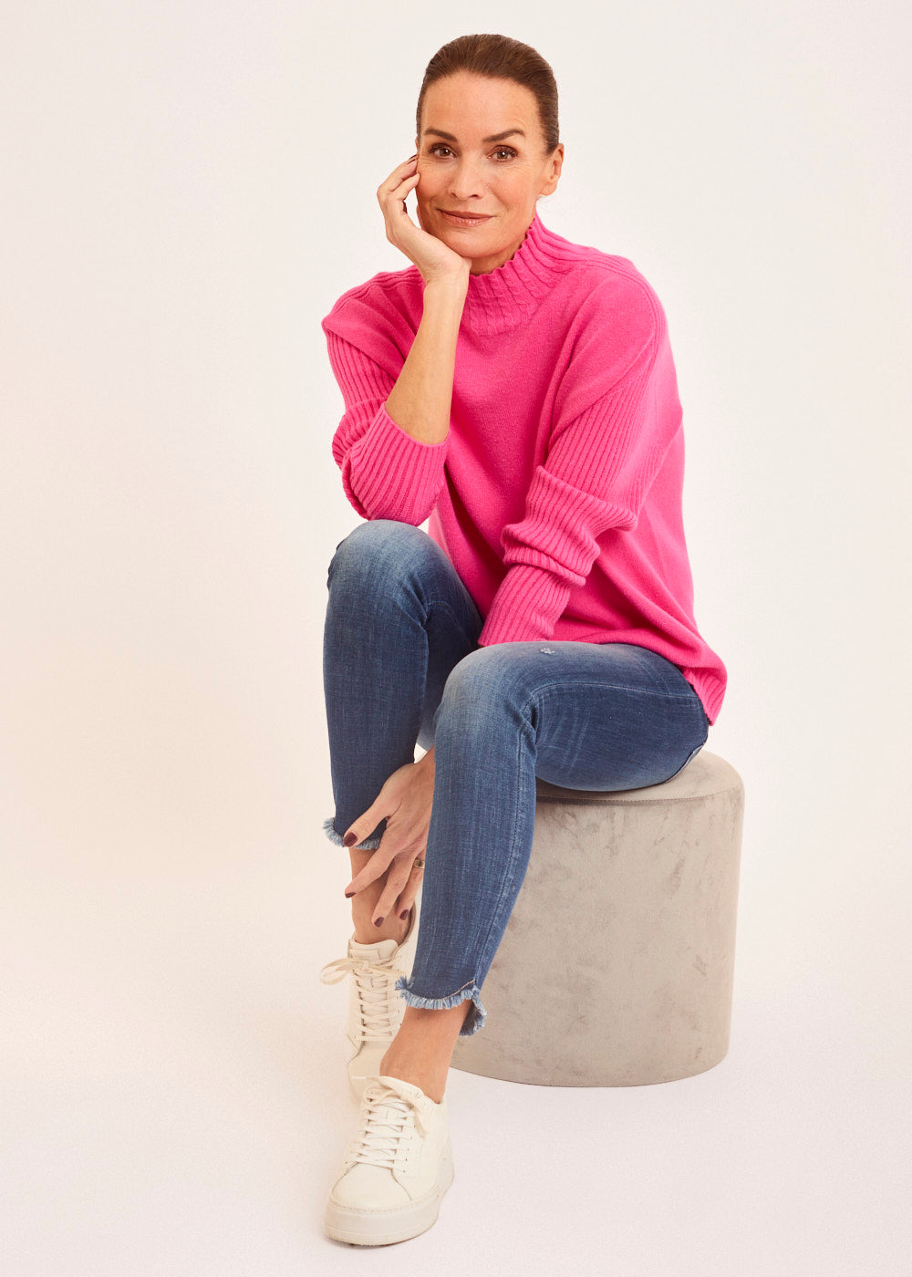 Der kuschelige Rollkragen schützt dich vor Wind und Kälte, während das auffällige Zopfmuster dem Pullover eine Extraportion Textur und Charme verleiht. Das strahlende Pink bringt Frische in deine Herbst- und Wintergarderobe und setzt dich modisch in Szene.