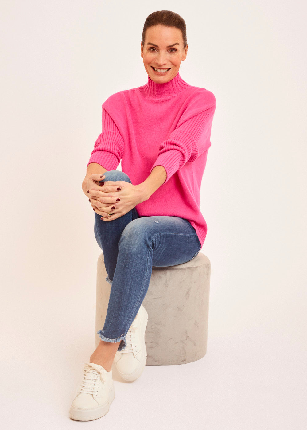 Setze ein modisches Statement und bestelle unseren Rollkragenpullover mit Zopfmuster in Pink noch heute. Kreiere unkompliziert trendige Outfits und genieße Komfort und Style in einem Kleidungsstück.