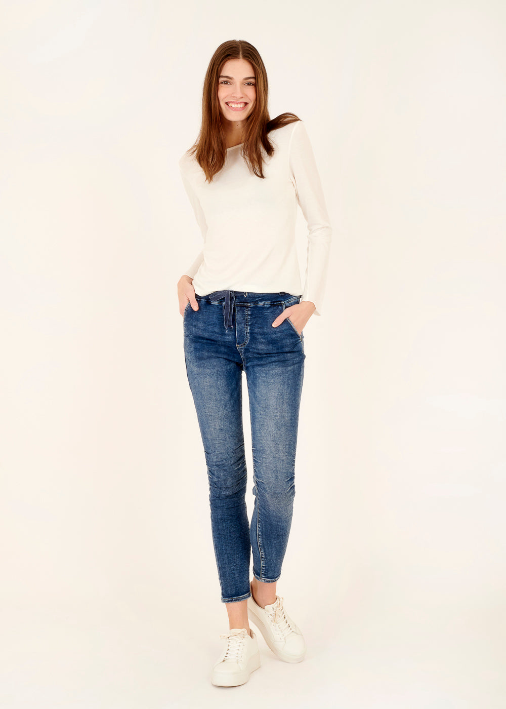 Das Model trägt bei einer Körpergröße von 179 cm die Konfektionsgröße S.