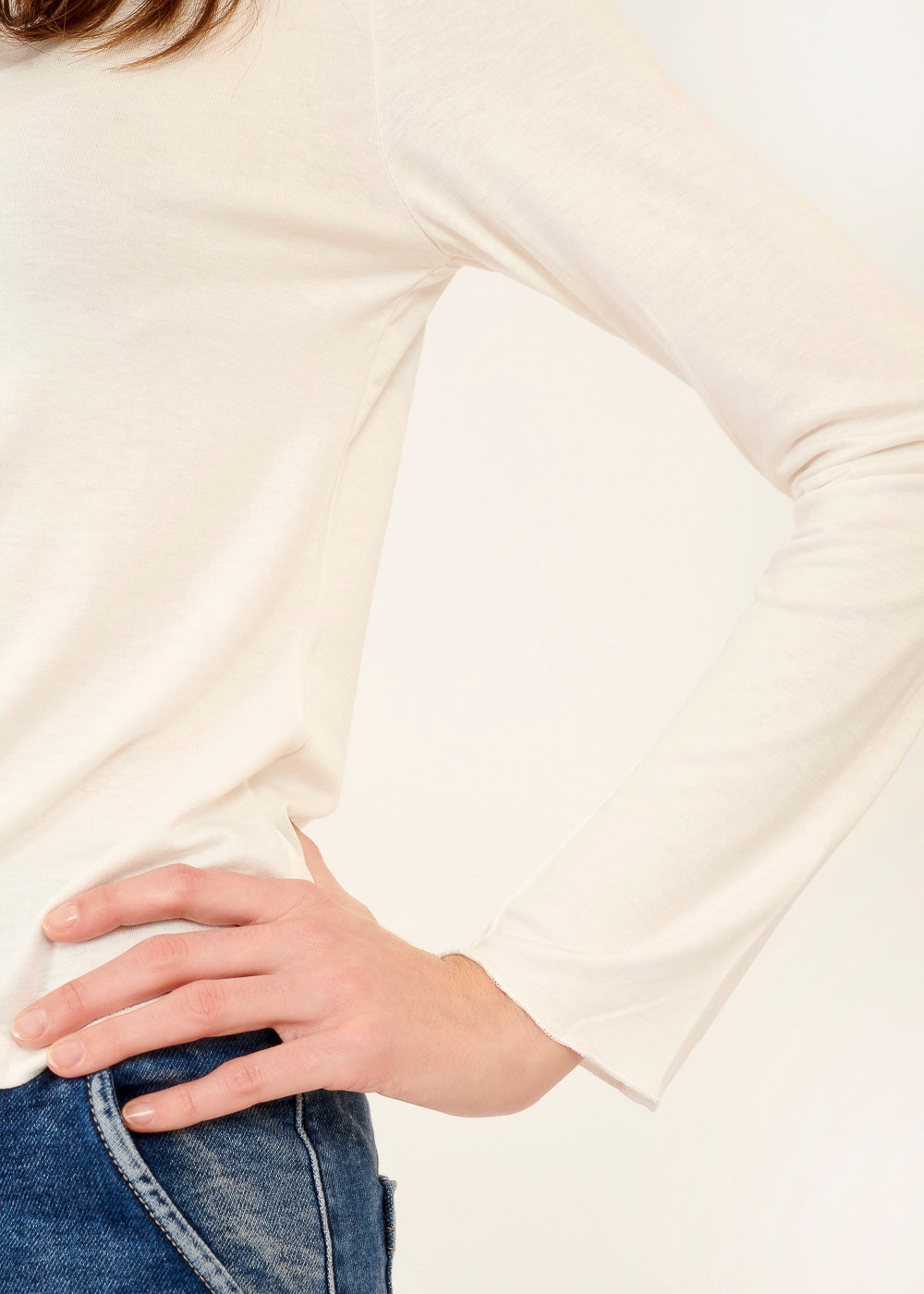 Probier unser weißes Langarmshirt für einen entspannten Look! Das Shirt hat lange Ärmel, um dich warm zu halten, und die weiße Farbe verleiht ihm eine schöne Ausstrahlung. Es ist super bequem und passt gut zu Jeans oder Leggings für einen lockeren Alltagsstil.