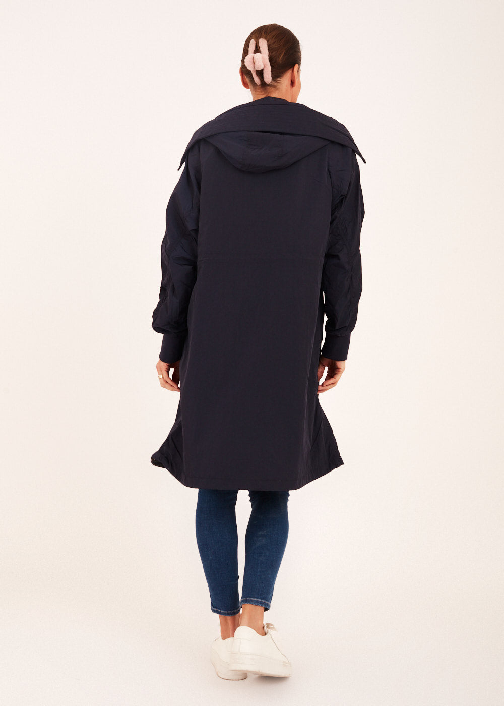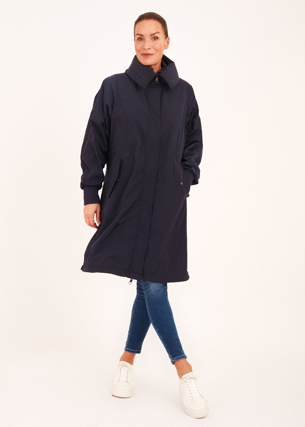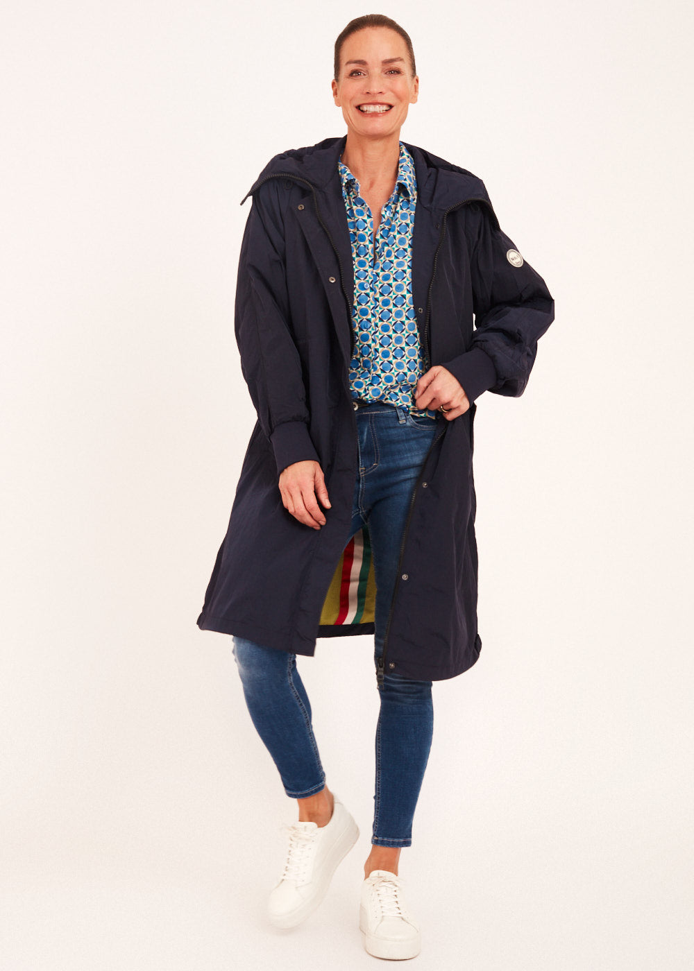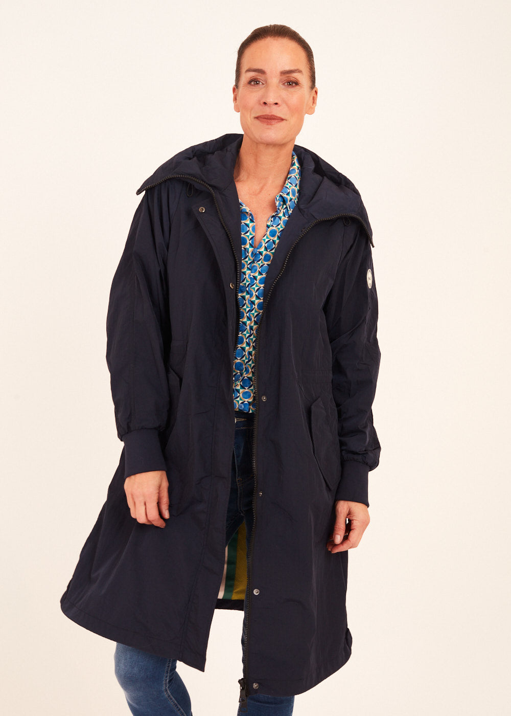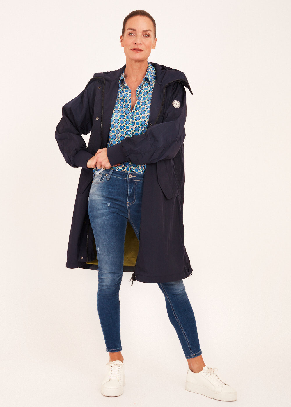 Erobere die Straßen mit dem lässigen und sportlichen Flair des langen Parkamantels von Como No. 1 in tiefem Blau. Dieser stylische Mantel kombiniert Funktionalität mit Fashion und wird somit zu deinem perfekten Begleiter für die kühleren Tage.