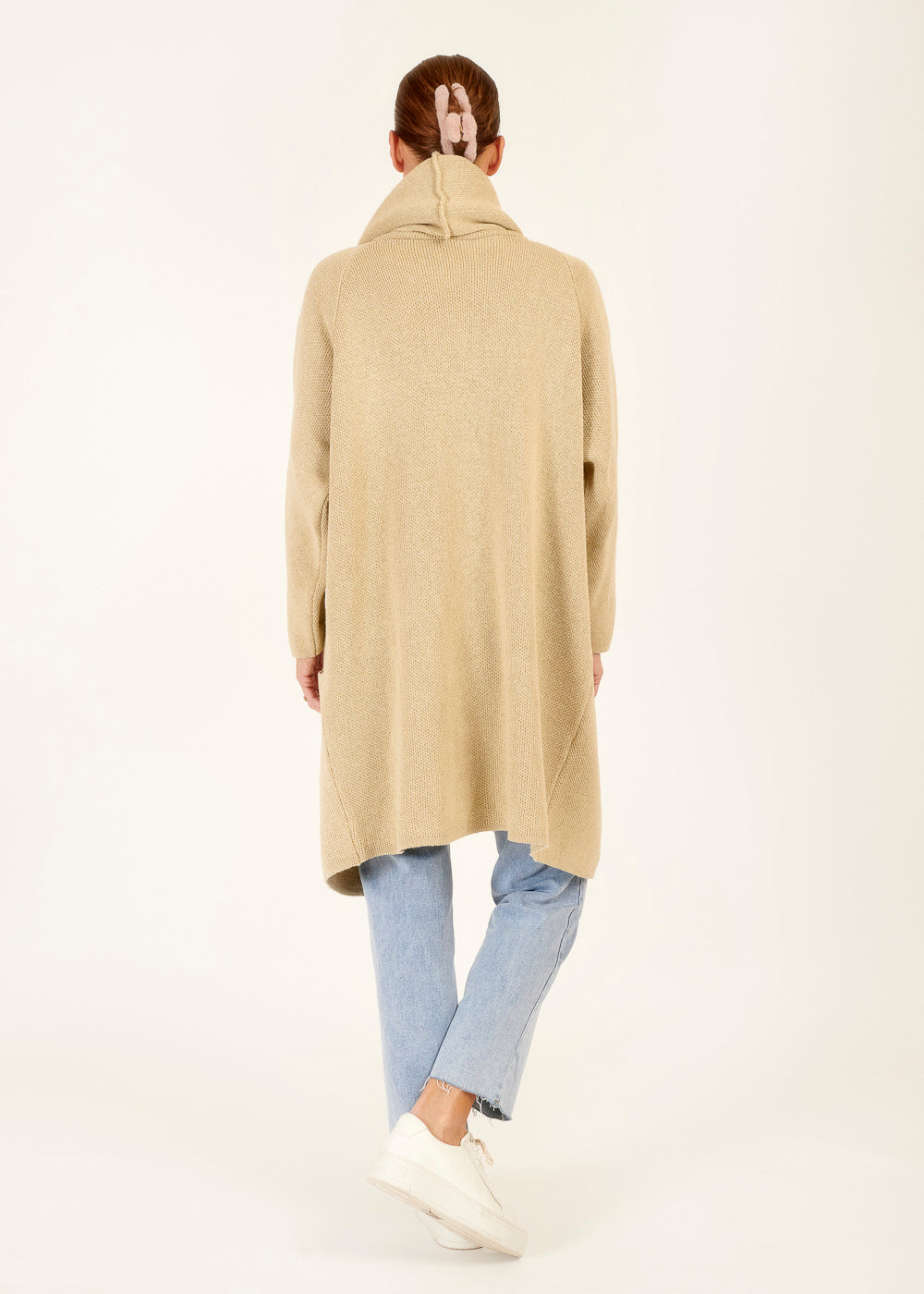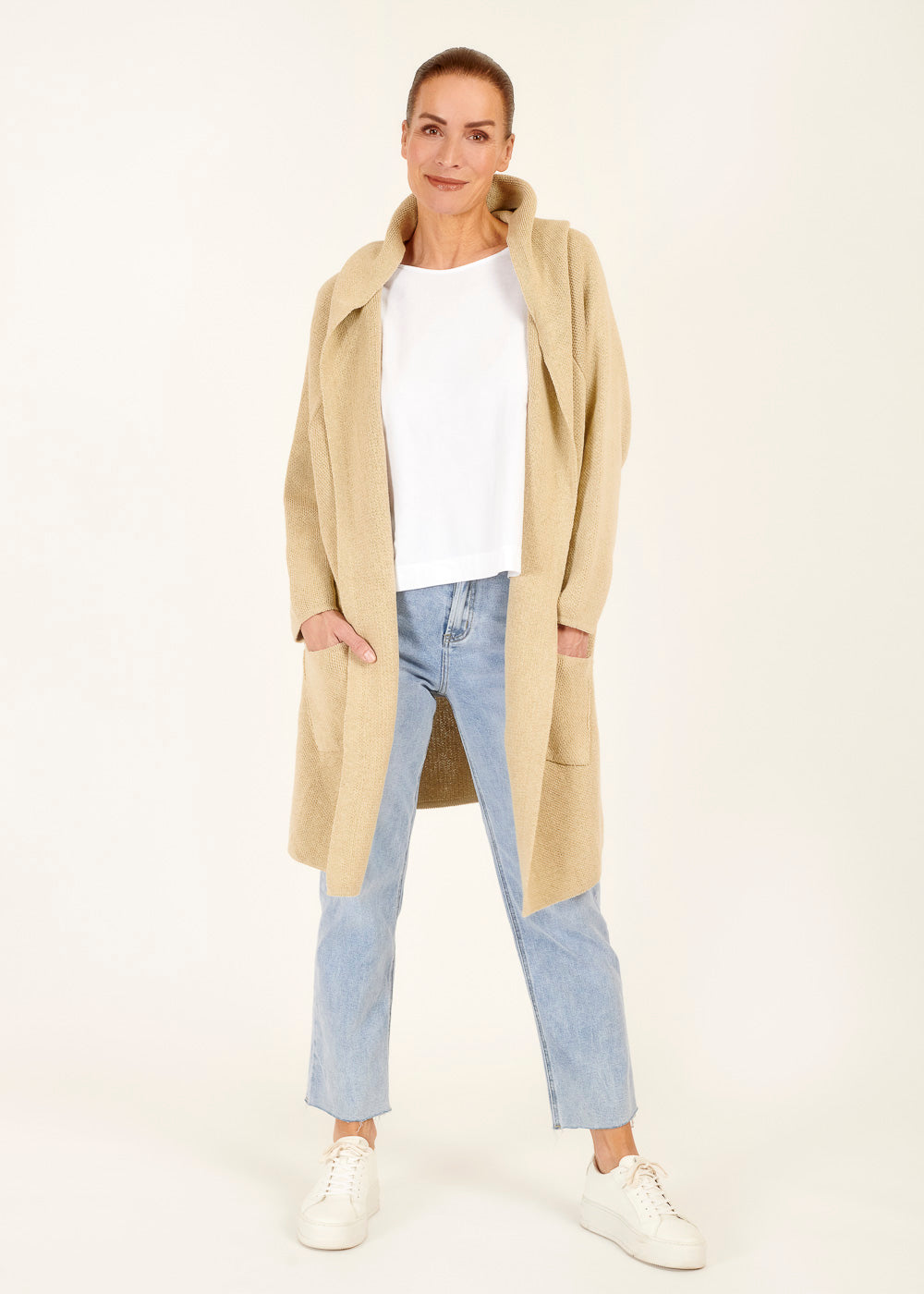Bereite dich auf einen lässigen Stil vor, der Komfort und Coolness vereint. Unsere Kapuzen-Strickjacke in Beige ist dein perfekter Begleiter für kühle Tage.