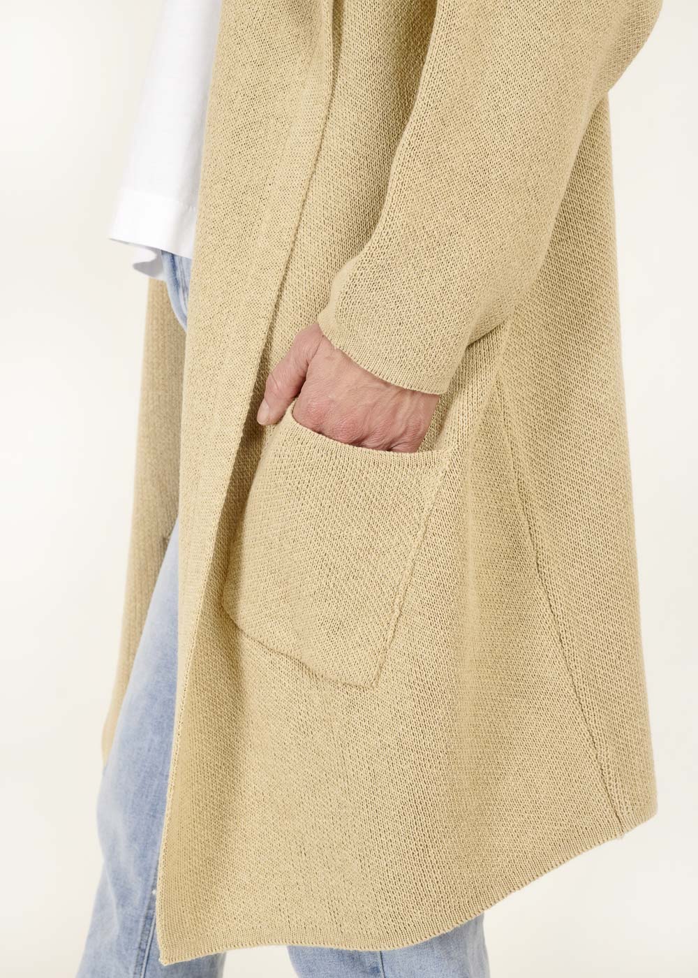 Der neutrale Beigeton macht diese Jacke vielseitig kombinierbar. Trage sie über einem simplen T-Shirt und Jeans für einen relaxten Look oder über einem Kleid für eine lässig-elegante Ausstrahlung.