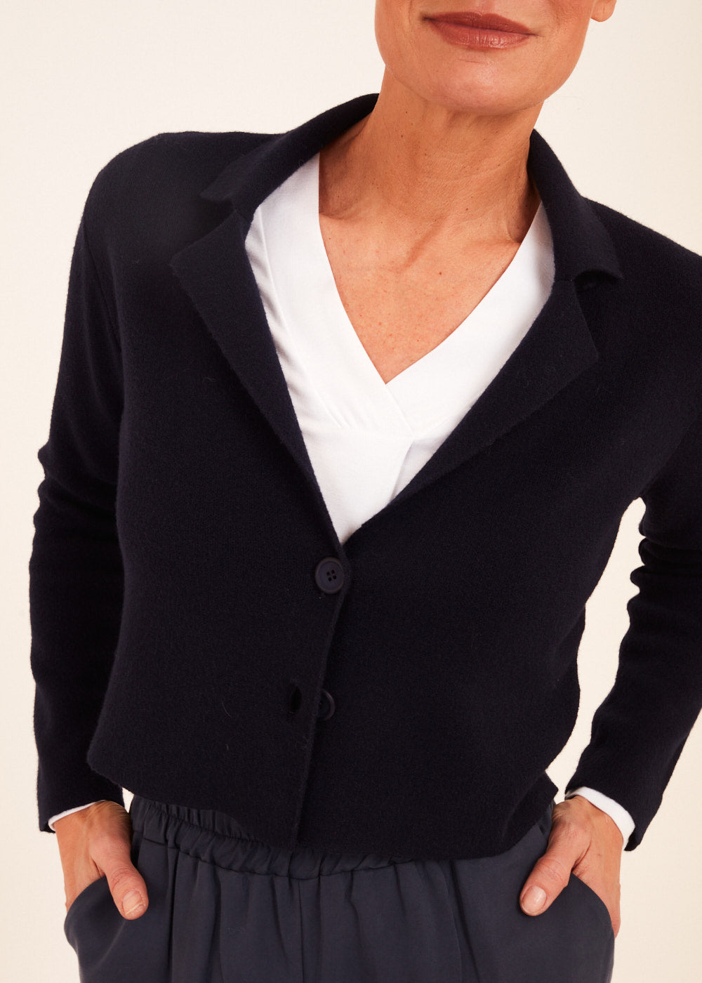Setze ein Statement mit unserem kurz geschnittenen Blazer in lebhaftem Blau. Der legere Stoff verleiht diesem stylischen Piece eine entspannte Eleganz. Perfekt für einen schicken Look mit minimalem Aufwand. Machen Sie mit diesem kurzen, blauen Blazer einen modischen Akzent – ein Must-Have für jede Gelegenheit.