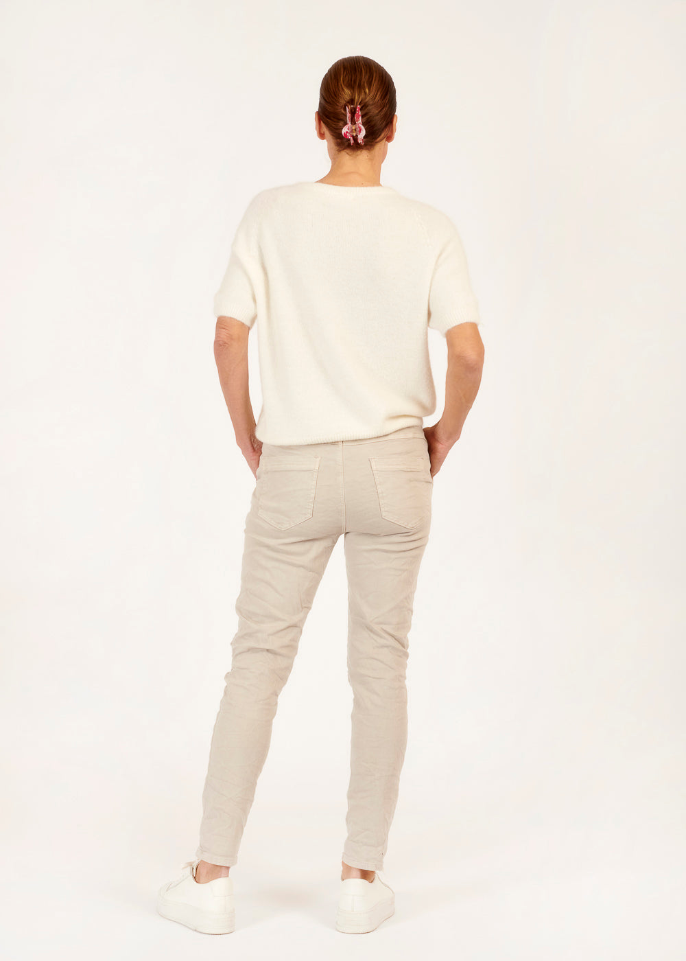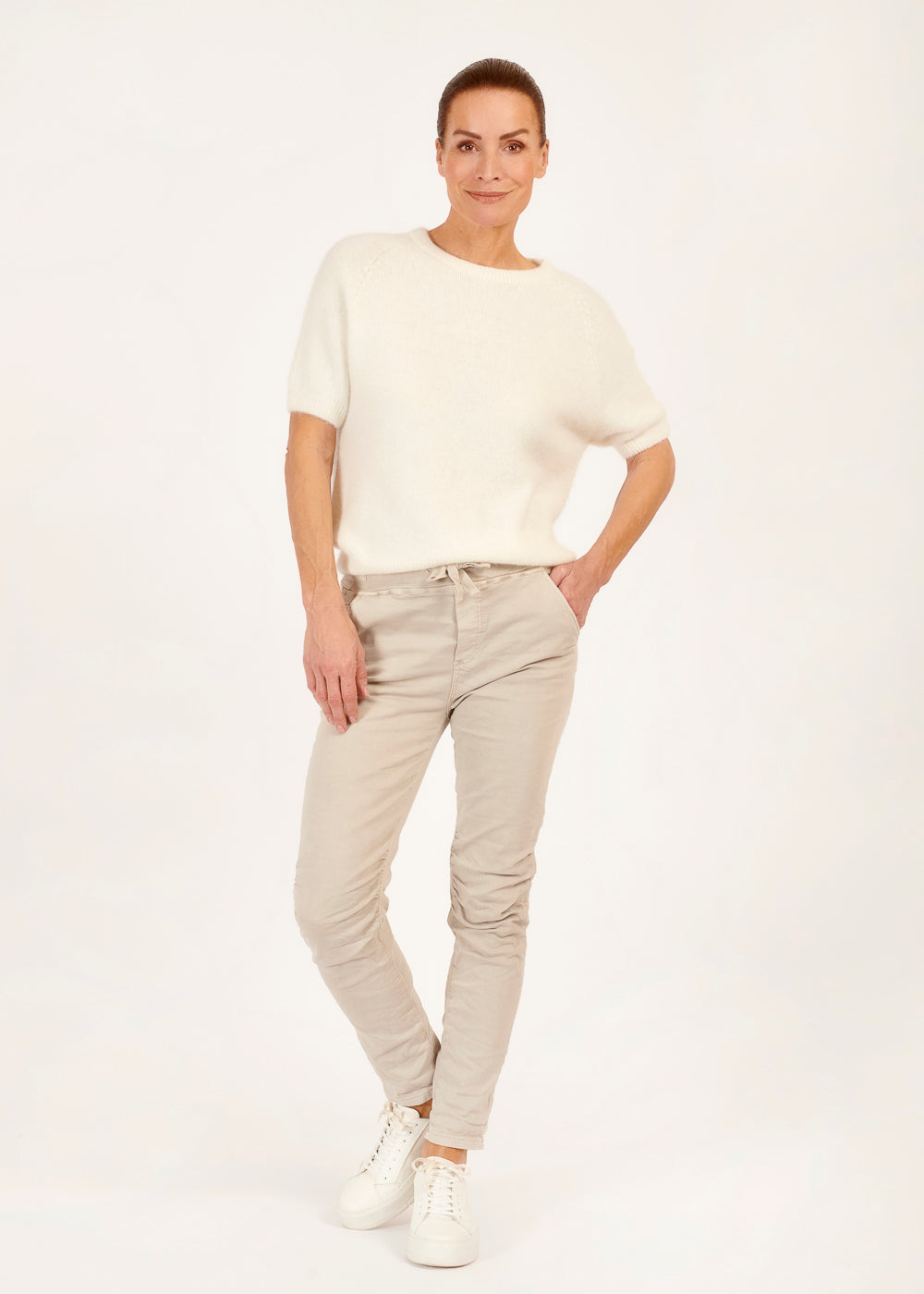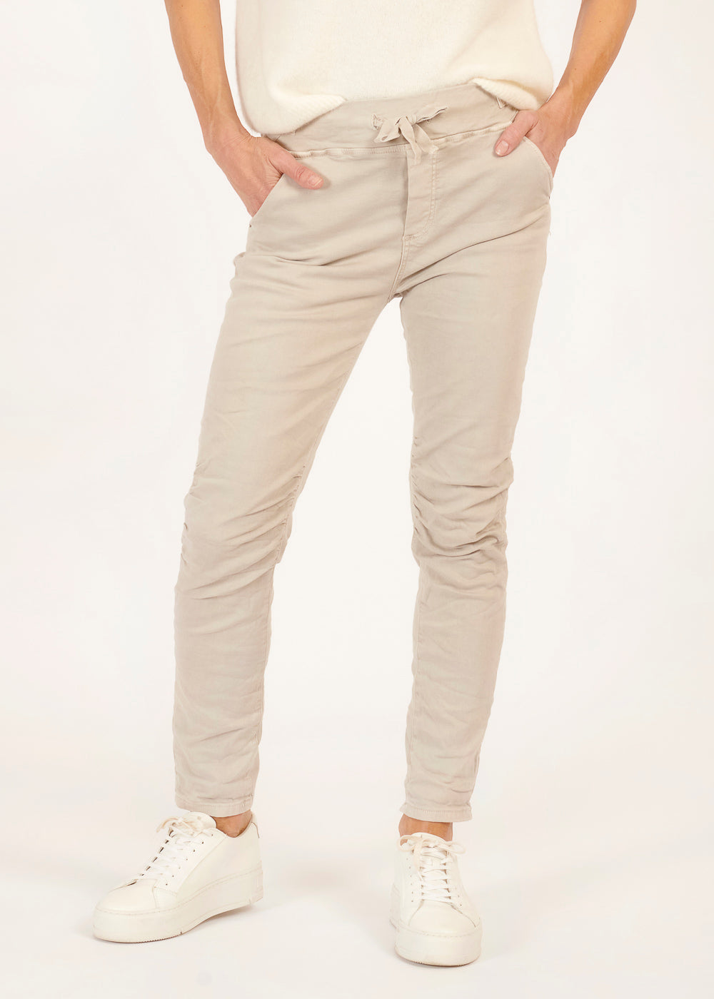 Unser Bestseller! Hose aus Viskose und Elasthan. Dadurch sitzt sie super bequem und lässt sich prima zu Allem kombinieren. Gummizug im Bund, Tunnelzug mit Band und seitliche Eingriffstaschen.