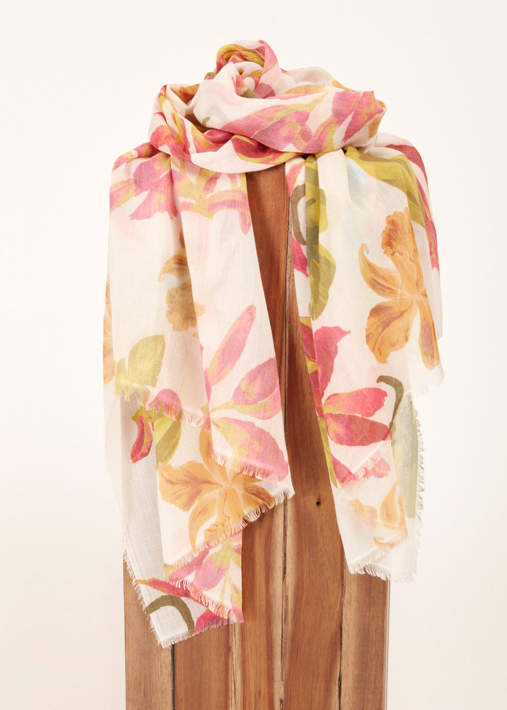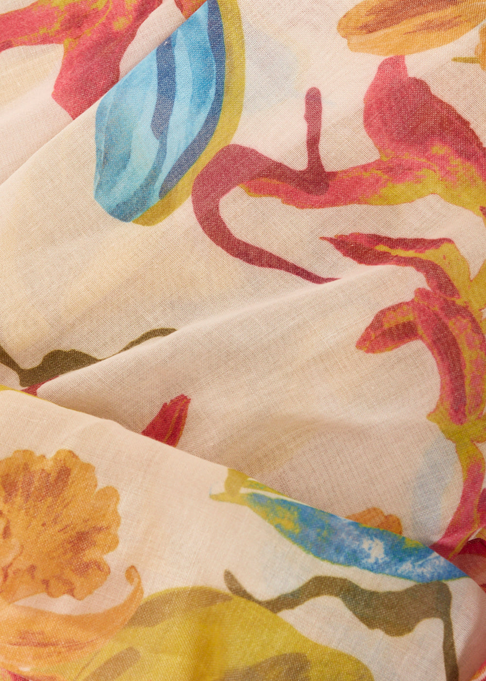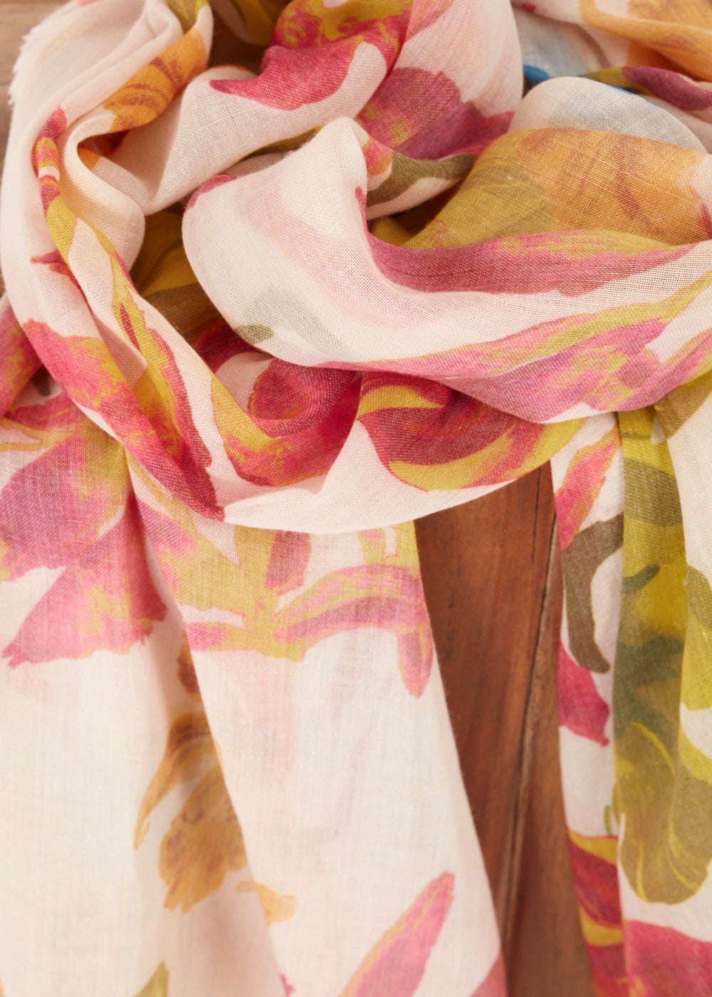 Unser Tuch mit Tropendruck macht Lust auf wärmere Temperaturen!