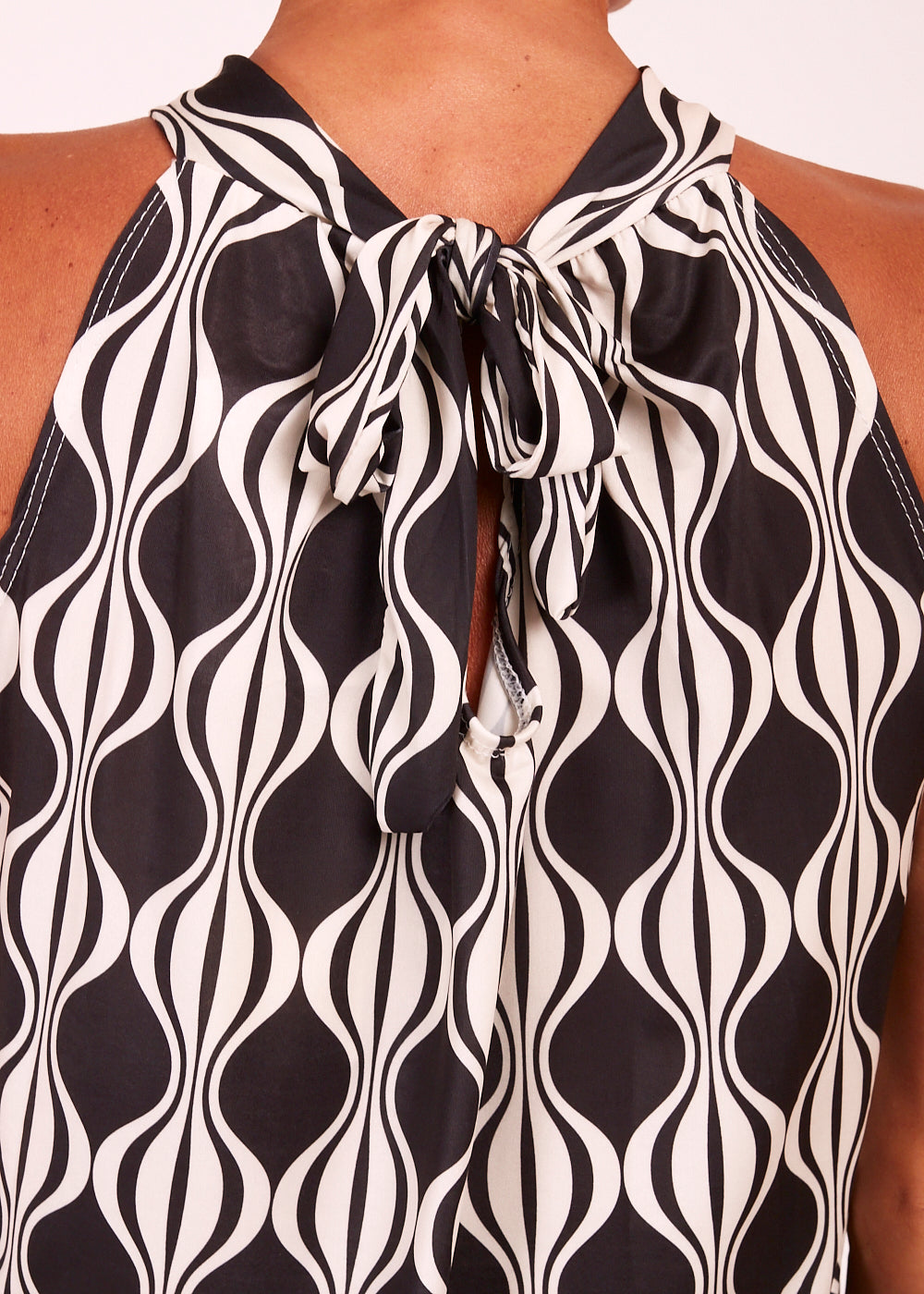 Mit dem Neckholdertop lassen sich schnell neue Styles zusammenstellen. Dieses Top hat einen gerafften Ausschnitt und ist hüftlang sowie figurbetont geschnitten. Für unsere Fashionista haben wir aber auch noch die passende Print Hose in unserem Shop.