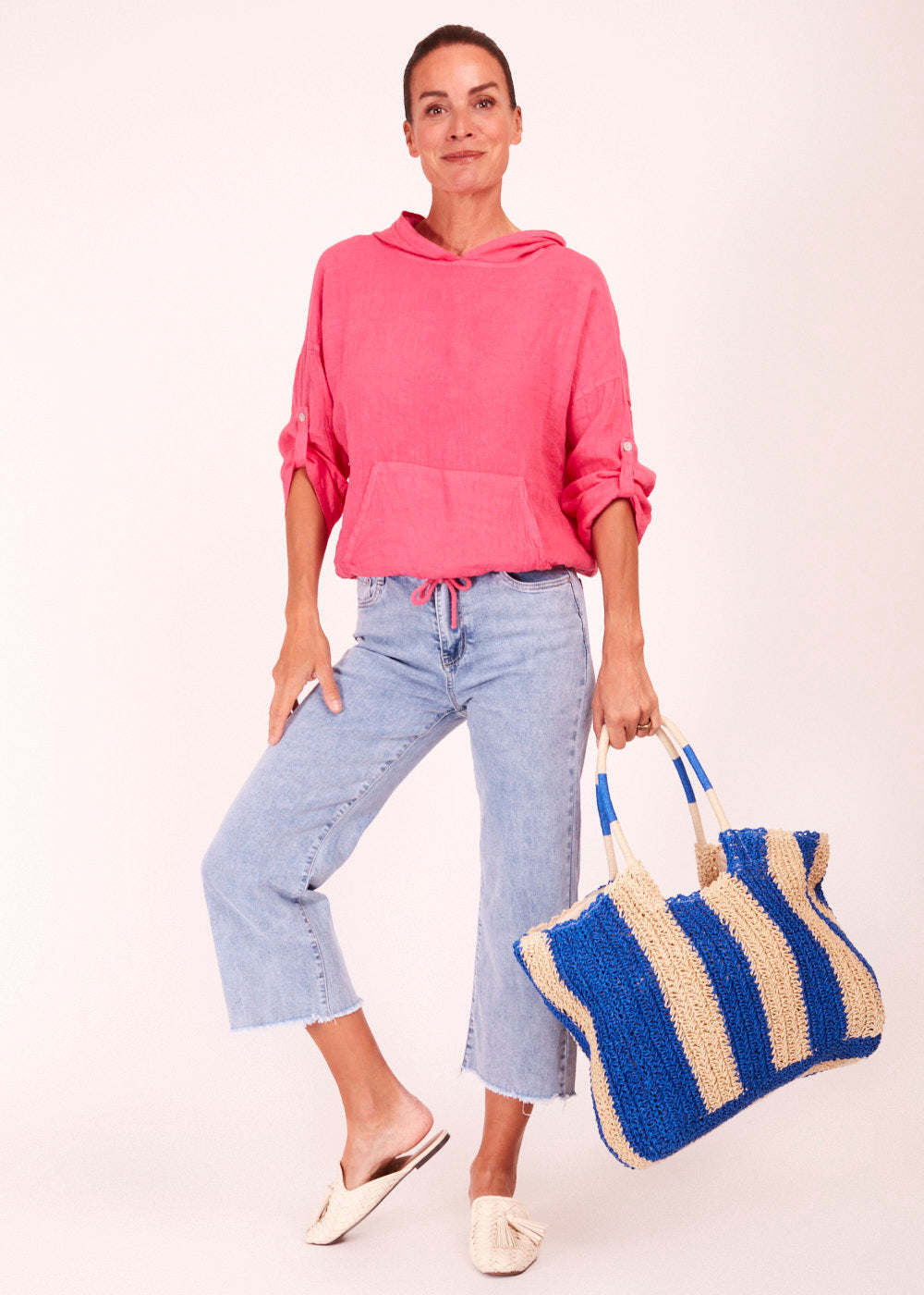 Entdecke unsere stilvolle Basttasche mit blauen Streifen – perfekt für den Sommer! Die  Tasche verleiht deinem Outfit einen Hauch von maritimem Flair und ist ideal für Strand, Markt oder Stadtbummel.