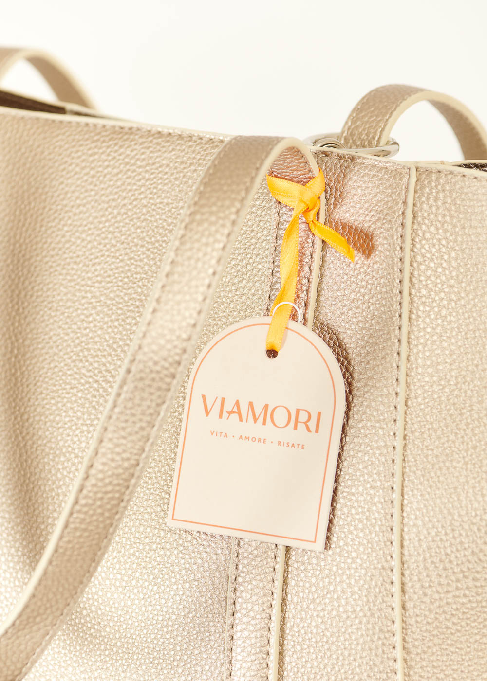 Die silberne Farbe Argento verleiht diesem VIAMORI Shopper einen Hauch von Glamour und Raffinesse, der jeden Look aufwertet. Mit seinem geräumigen Design und den praktischen Henkeln ist dieser Shopper ideal für den täglichen Gebrauch, sei es beim Einkaufen, auf Reisen oder für den Stadtbummel.