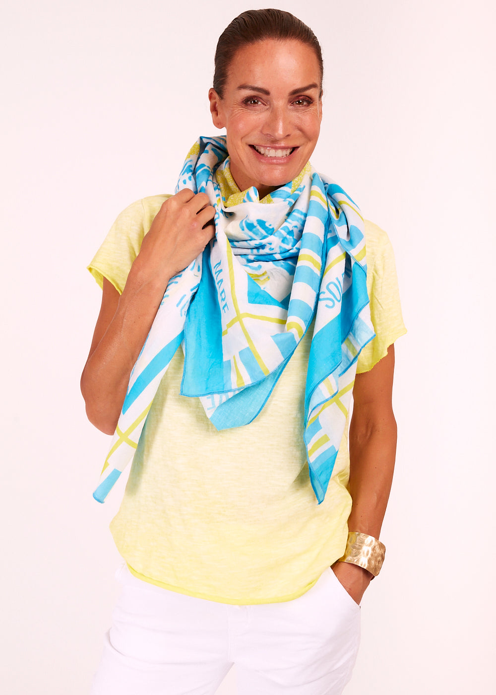 Tauche mit unserem "Quadrato Parasole" Tuch in die süße Lebensfreude Italiens ein. Ein Hauch von La Dolce Vita, um deinen Tag zu verschönern.