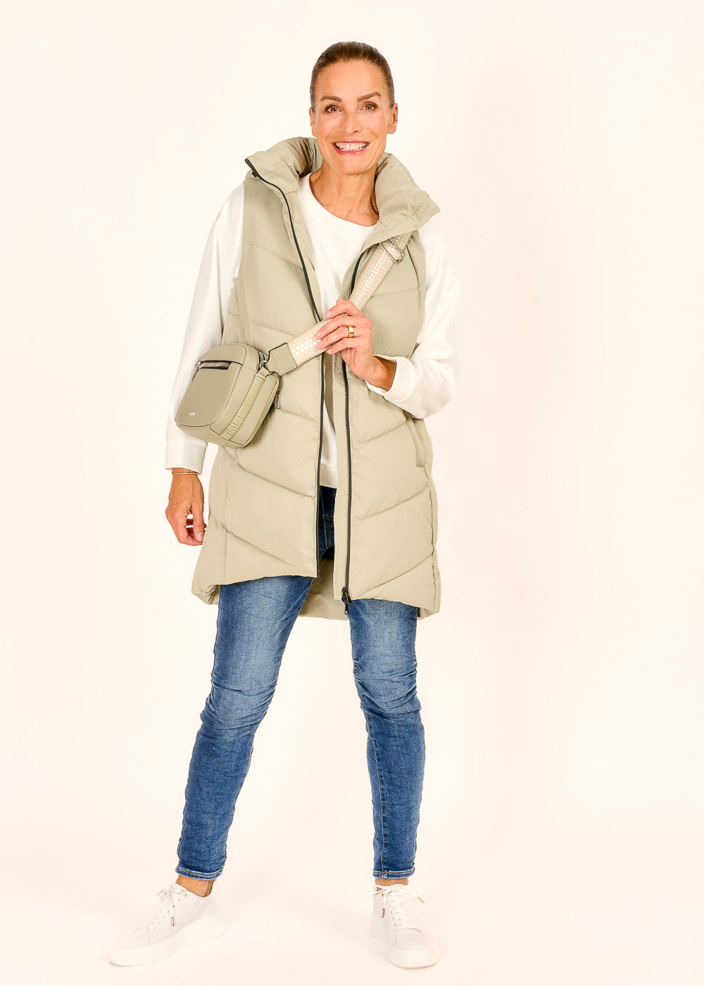 Mit der Longweste in Verde bringst du frischen Wind in deine Garderobe. Sie lässt sich vielseitig kombinieren und verleiht jedem Outfit einen stylischen Touch!