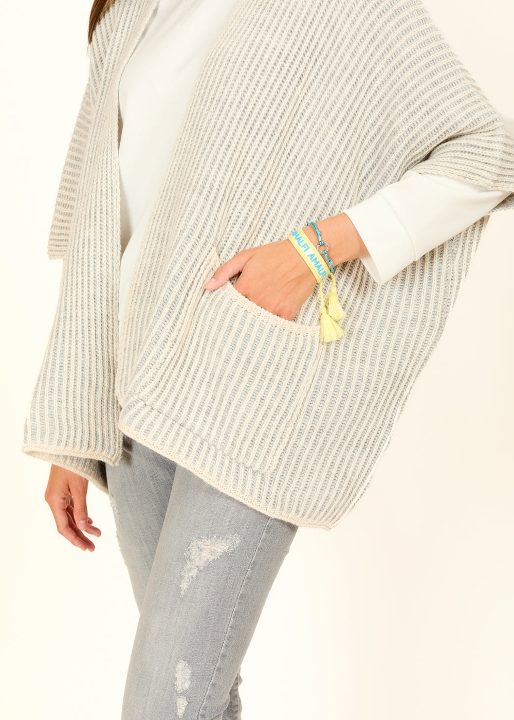 Entdecke unser elegantes Mantella mit Rippe in der zarten Farbe Panna. Dieses kuschelige Accessoire wärmt Dich stilvoll und rundet Dein Outfit perfekt ab.