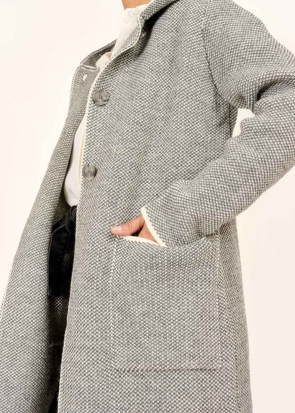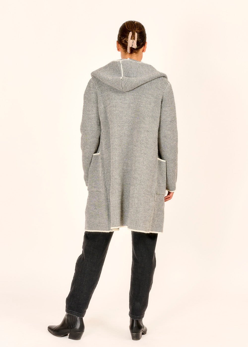 Entdecke den kuscheligen Strickmantel in grigio, der Dich mit seinem weichen Material und stilvollem Design durch die kühlen Tage begleitet. Perfekt für gemütliche Stunden oder als schickes Layering-Piece für den Alltag!