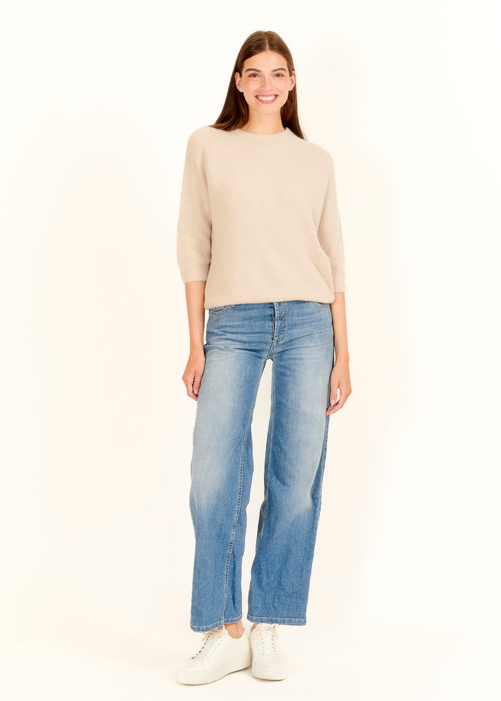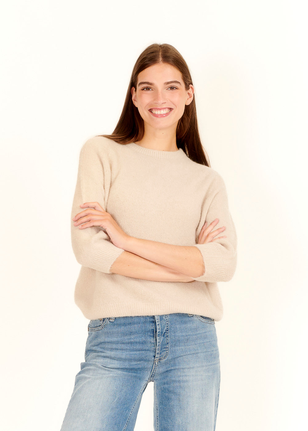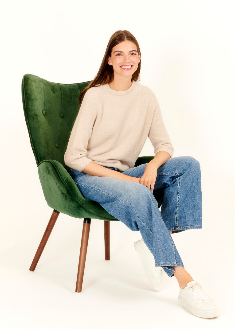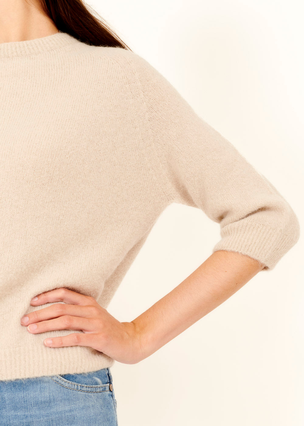 Hol dir den modischen Pulli in Beige aus kuschelig weichem Babyalpaka und erlebe höchsten Tragekomfort mit einem Hauch von Luxus. Perfekt für einen stylischen Auftritt an kühlen Tagen!