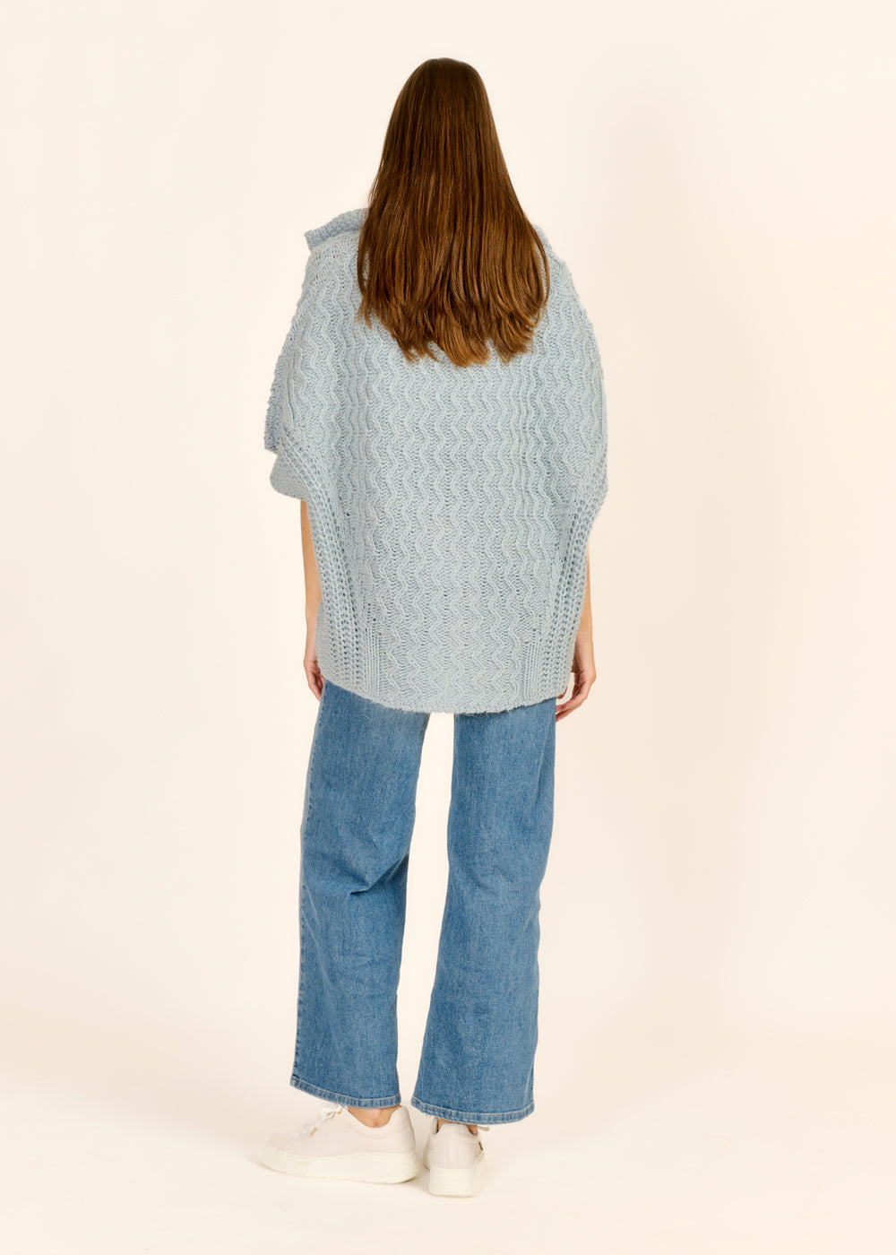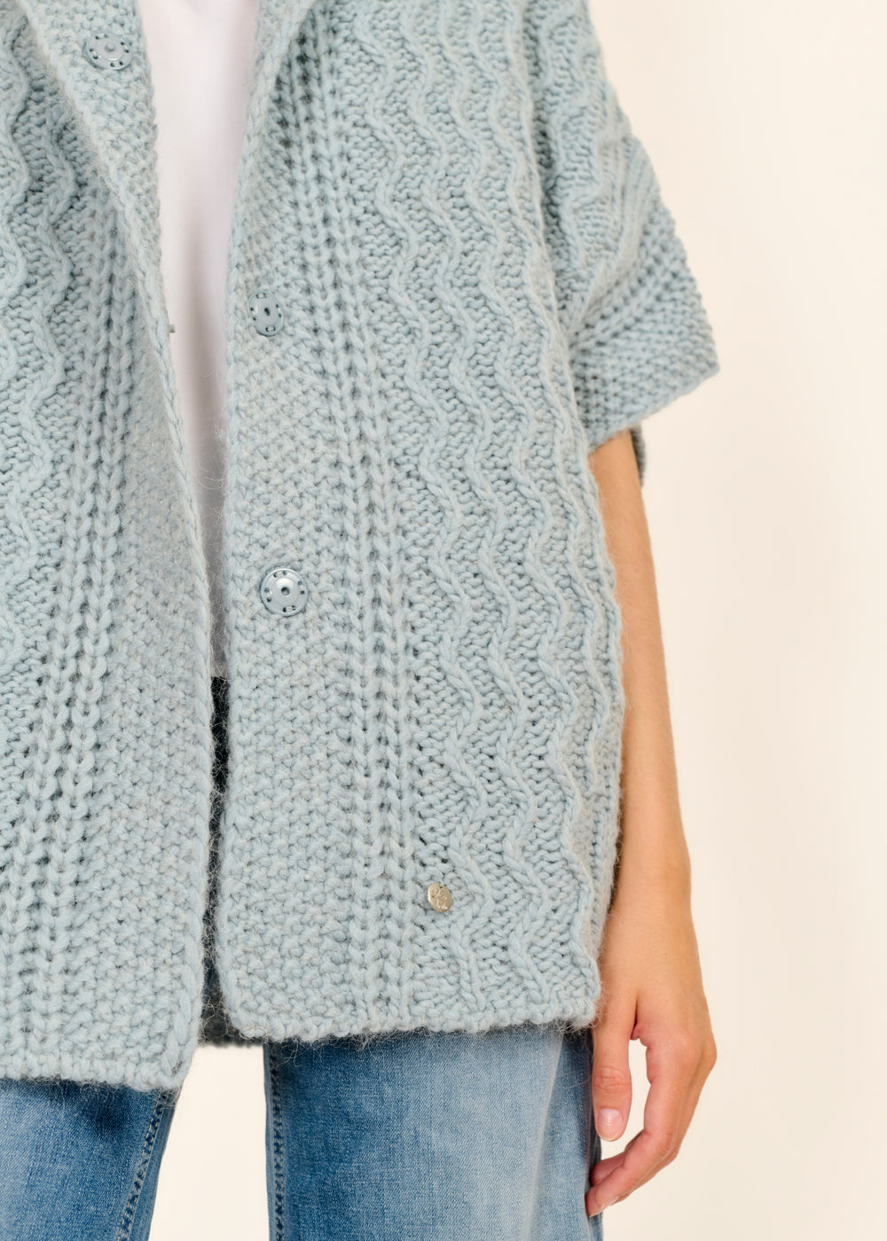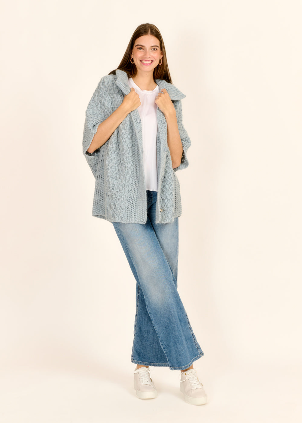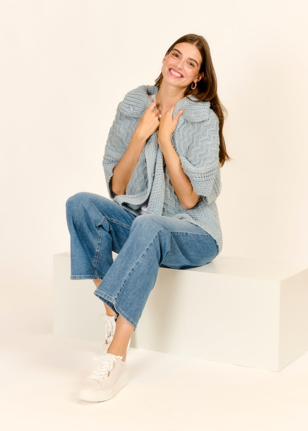 Unser geliebtes Strickcape mit kurzen Armen ist der perfekte Begleiter zum drüber werfen. Er ist mit Knöpfen verschließbar und lässt sich daher auch perfekt geschlossen tragen. Mit diesem extravaganten Strickstück sind Sie für alle Fashion-Fälle gewappnet.