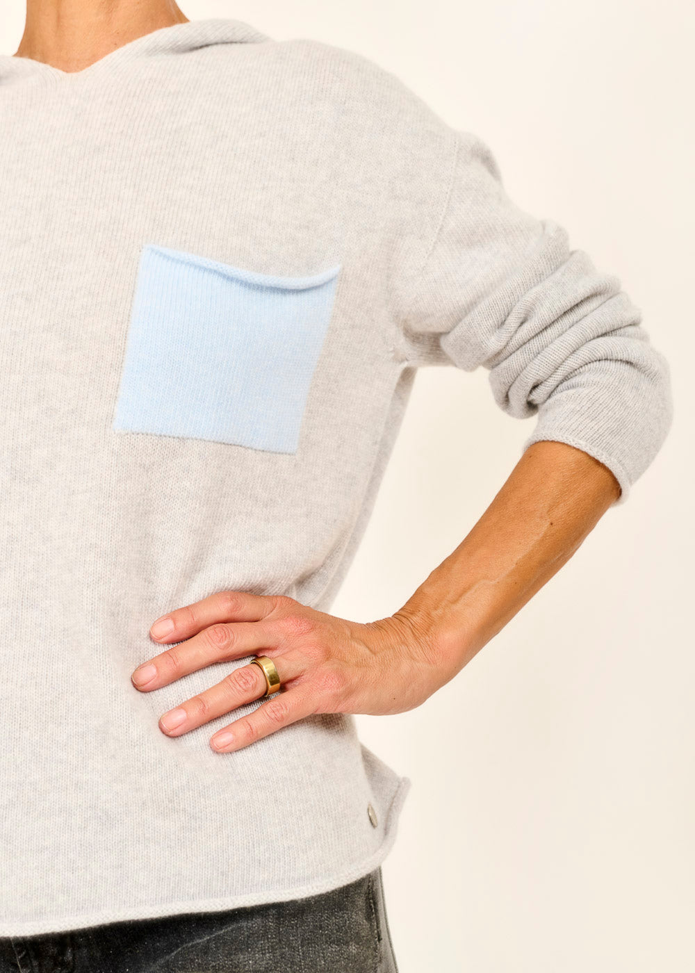 Entdecke den edlen Hoody in Grigio, der mit seiner farblich abgesetzten, aufgenähten Brusttasche stilvolle Akzente setzt. Das perfekte Piece für deinen entspannten, aber trendigen Look!
