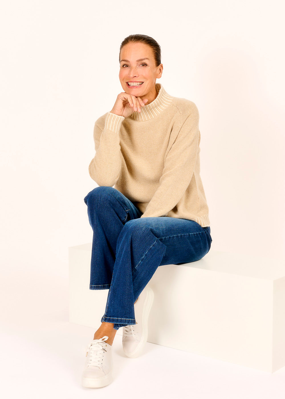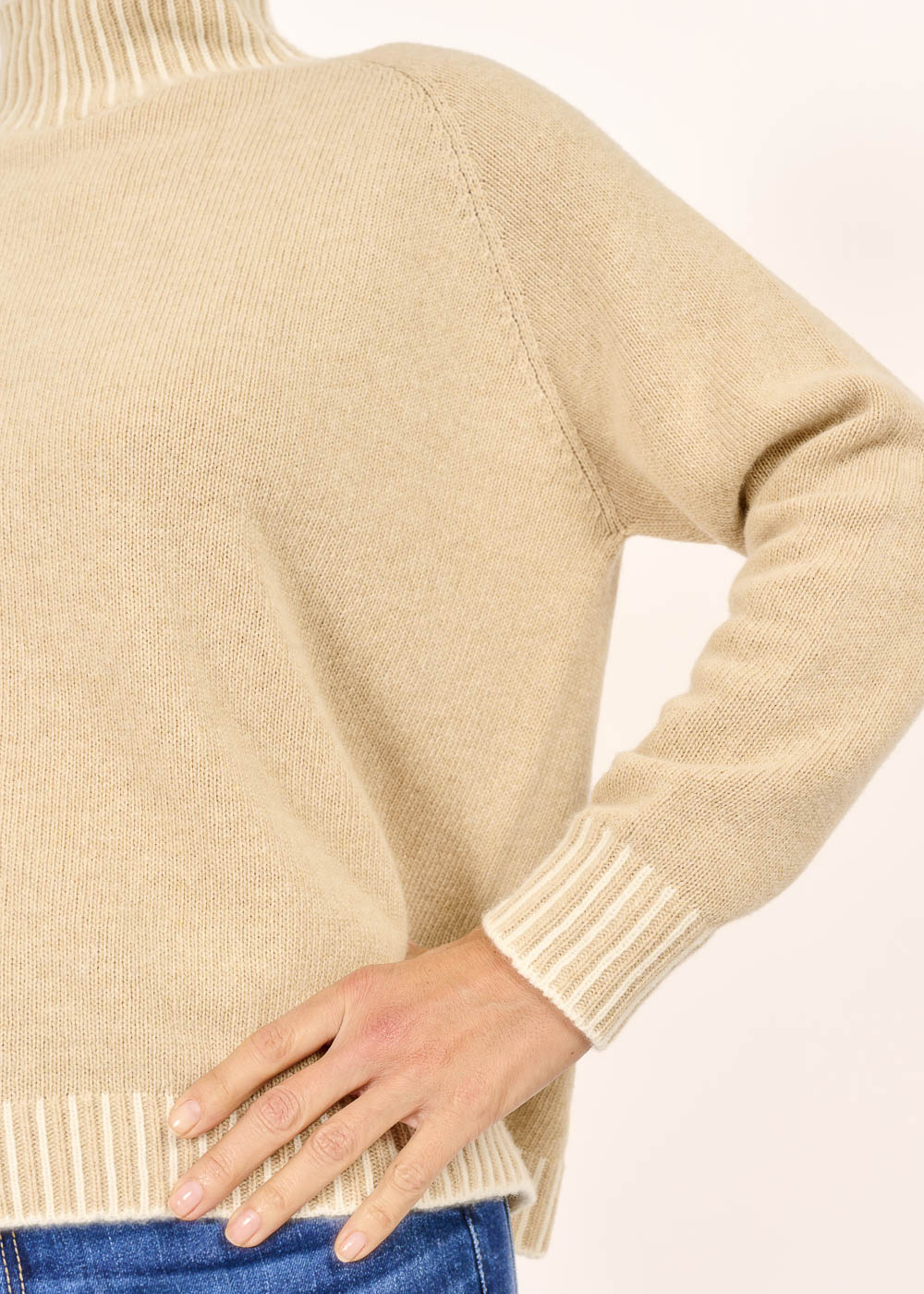 Entdecke unseren edlen Stehkragenpulli in Beige – der perfekte Begleiter für jeden Anlass! Mit seinem zeitlosen Design und angenehmen Material schaffst Du mühelos einen stilvollen Look.