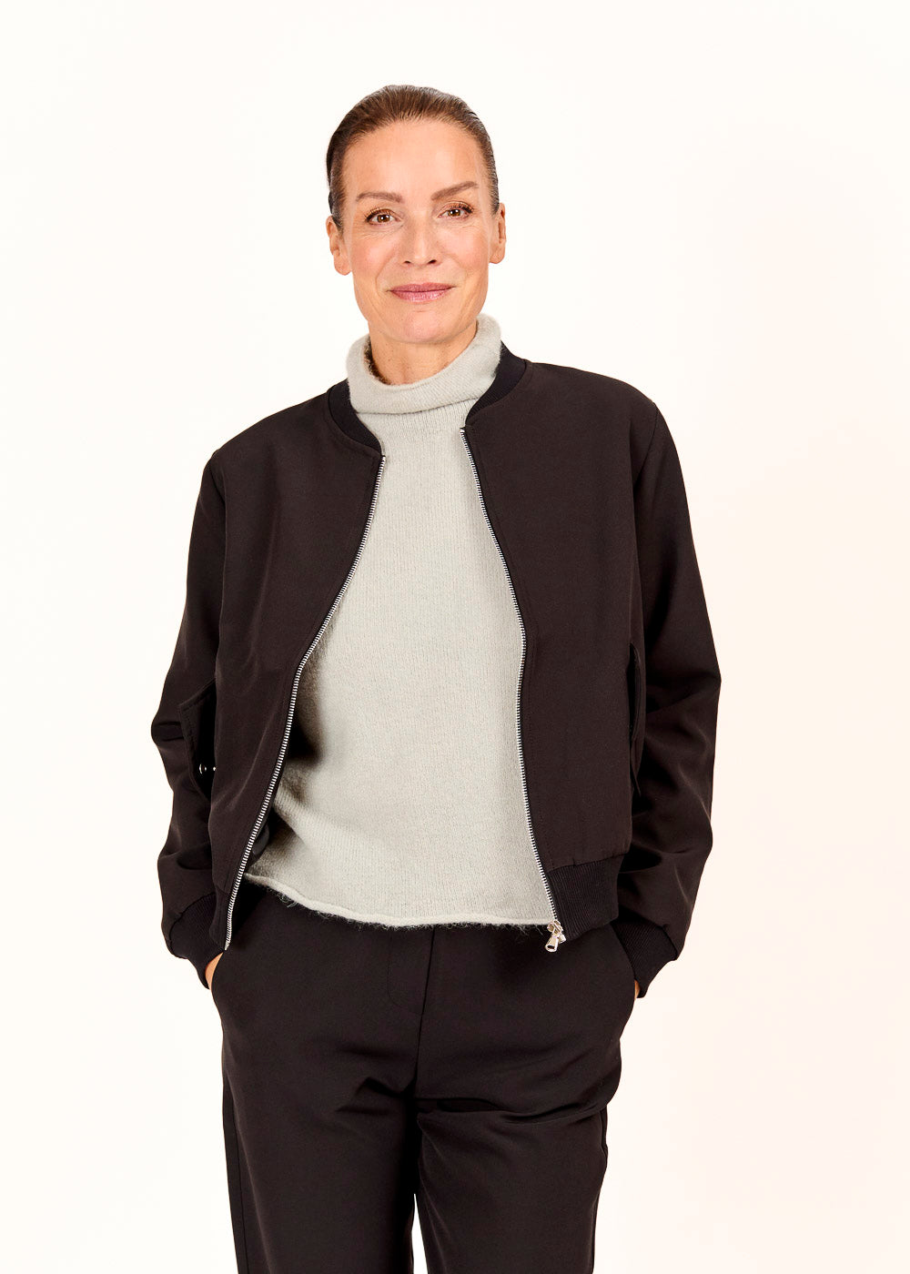 Entdecke den stylischen Bomberino in klassischem Schwarz – perfekt für deinen lässigen Look und vielseitig kombinierbar. Mit seinem bequemen Schnitt und hochwertigen Material wird er schnell zu deinem neuen Lieblingsstück!