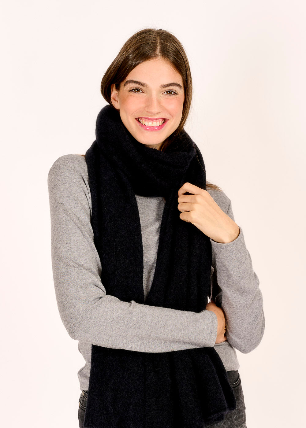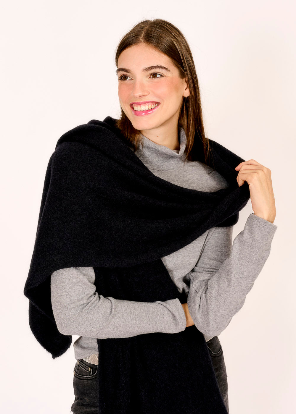 Dieser Kuschelschal in Nero sorgt für wohlige Wärme und ist der perfekte Begleiter an kalten Tagen. Mit seinem weichen Material umhüllt er dich sanft und stilvoll – ein Must-have für deine Herbst- und Wintergarderobe!