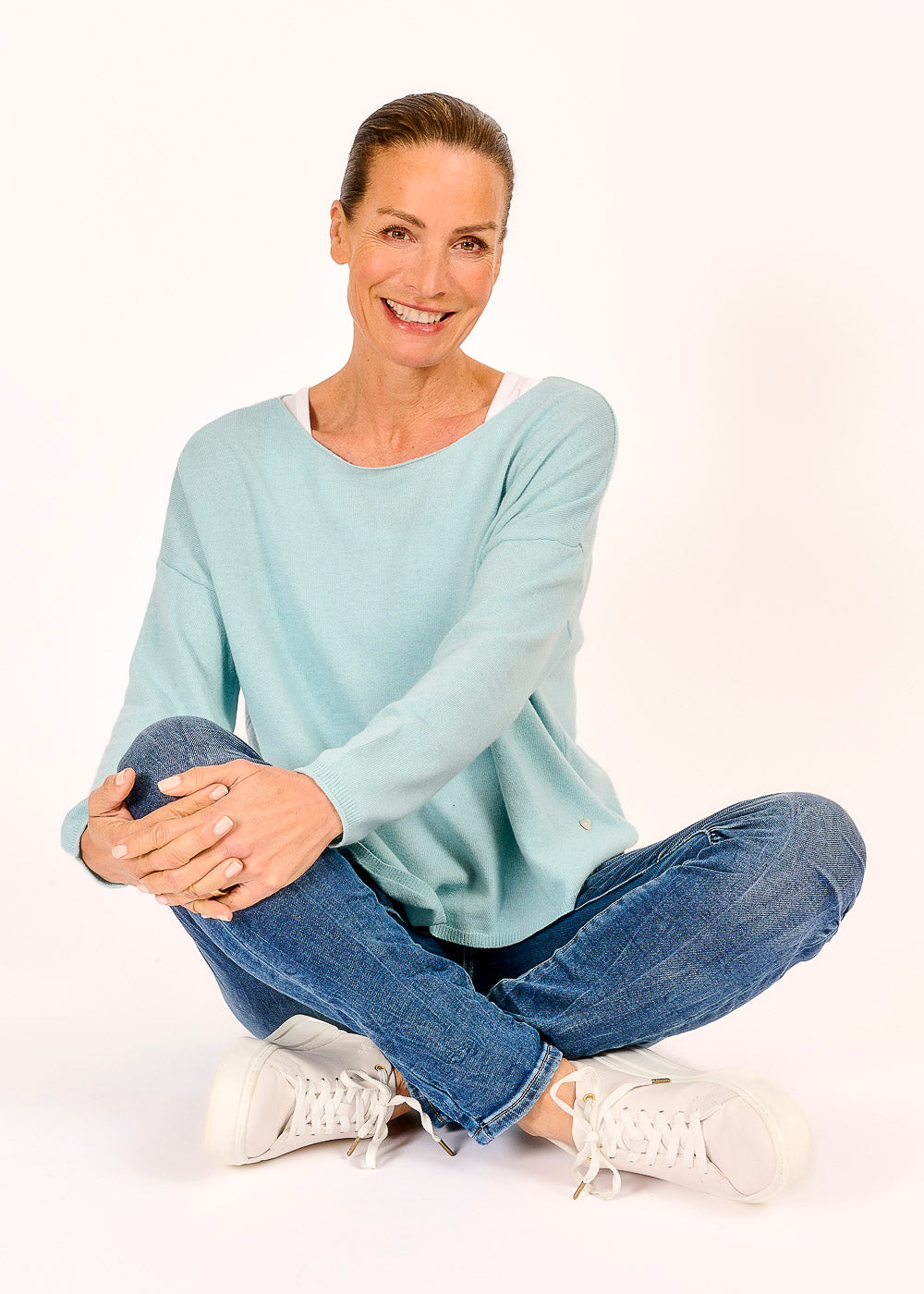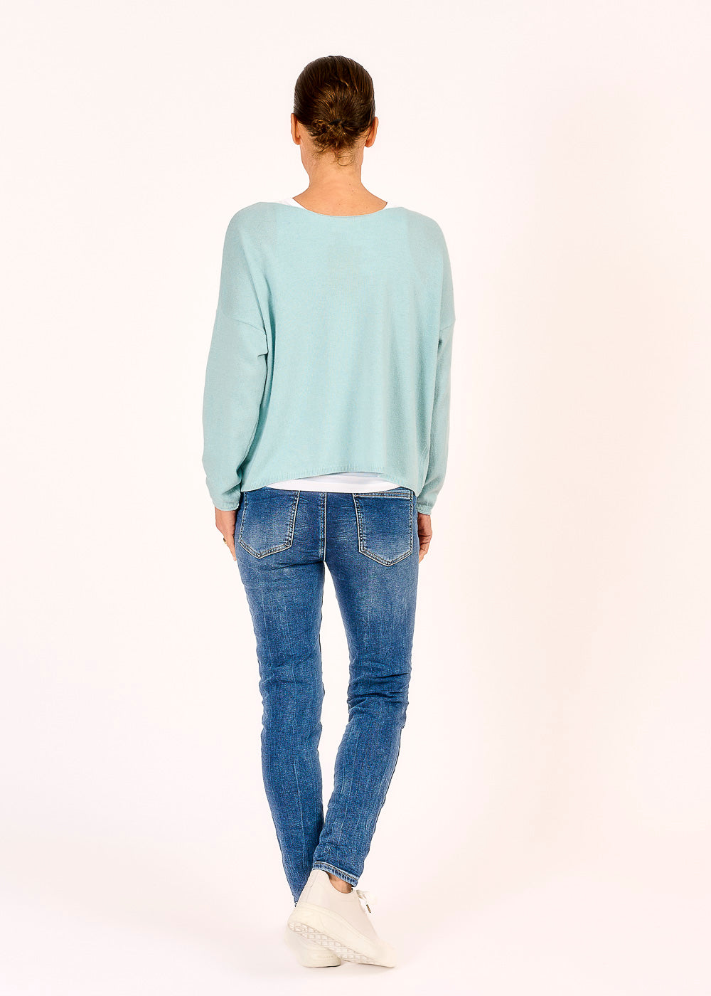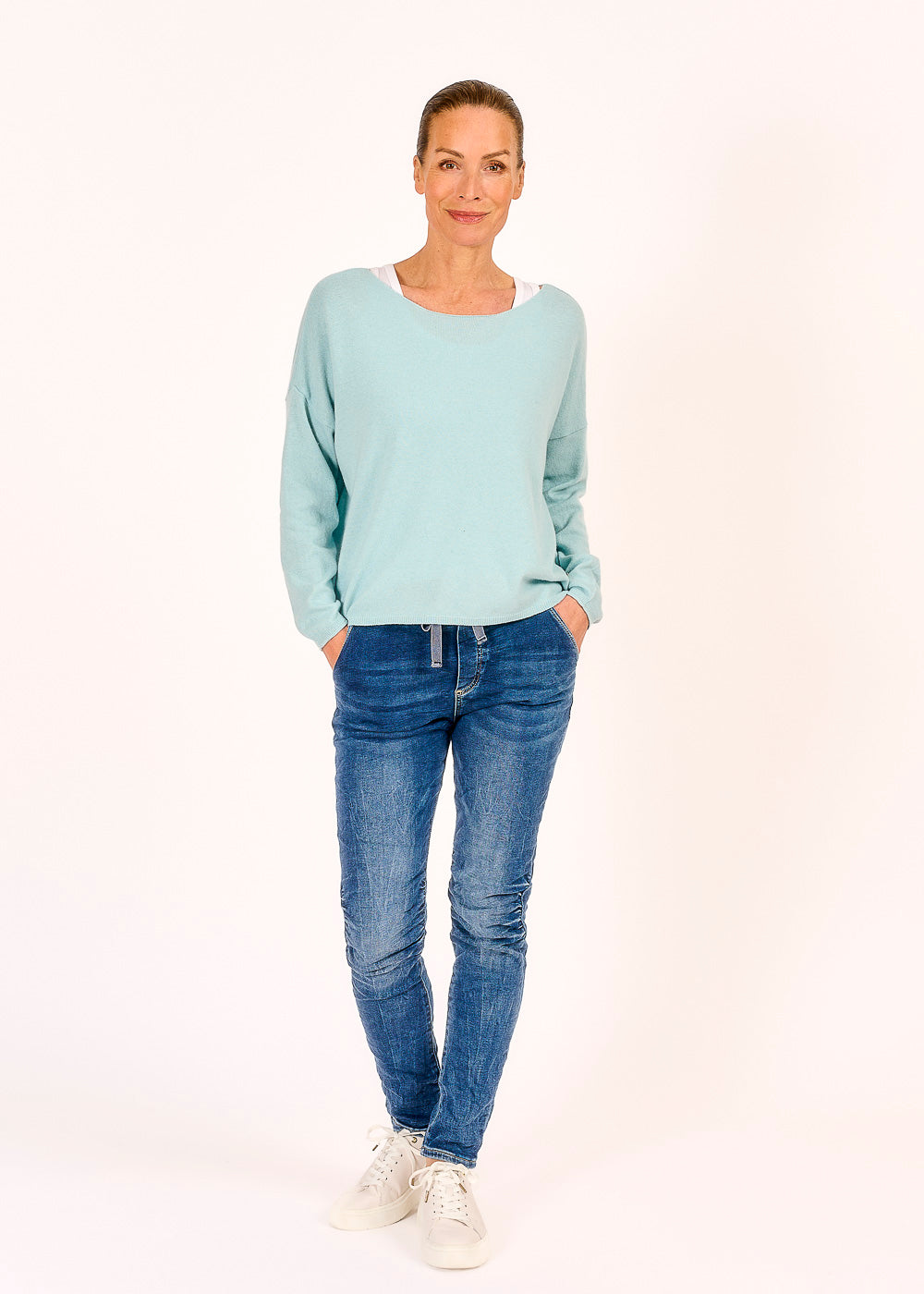 Dieser Cropped Pullover in zartem Hellblau verleiht deinem Outfit eine frische, moderne Note. Der 10 % Kaschmiranteil sorgt für ein unglaublich weiches Tragegefühl und macht den Pullover besonders luxuriös. Mit seinem trendigen Schnitt und der dezenten Farbe lässt sich der Pullover vielseitig kombinieren und ist ein echtes Must-have für jeden Kleiderschrank.