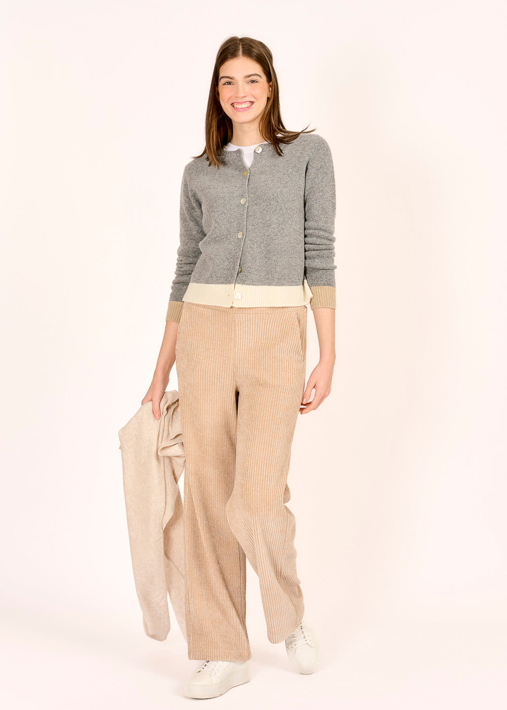 Dieser elegante Merino Cardigan in der Farbe Grigio besticht durch seine feine Materialqualität und die durchdachten Farbakzente. Die unterschiedlichen Abschlüsskanten in Panna und Beige verleihen dem Cardigan eine besondere Raffinesse und sorgen für einen harmonischen Look. Ein vielseitiges Kleidungsstück, das sowohl zu formellen als auch zu lässigen Outfits perfekt kombiniert werden kann.