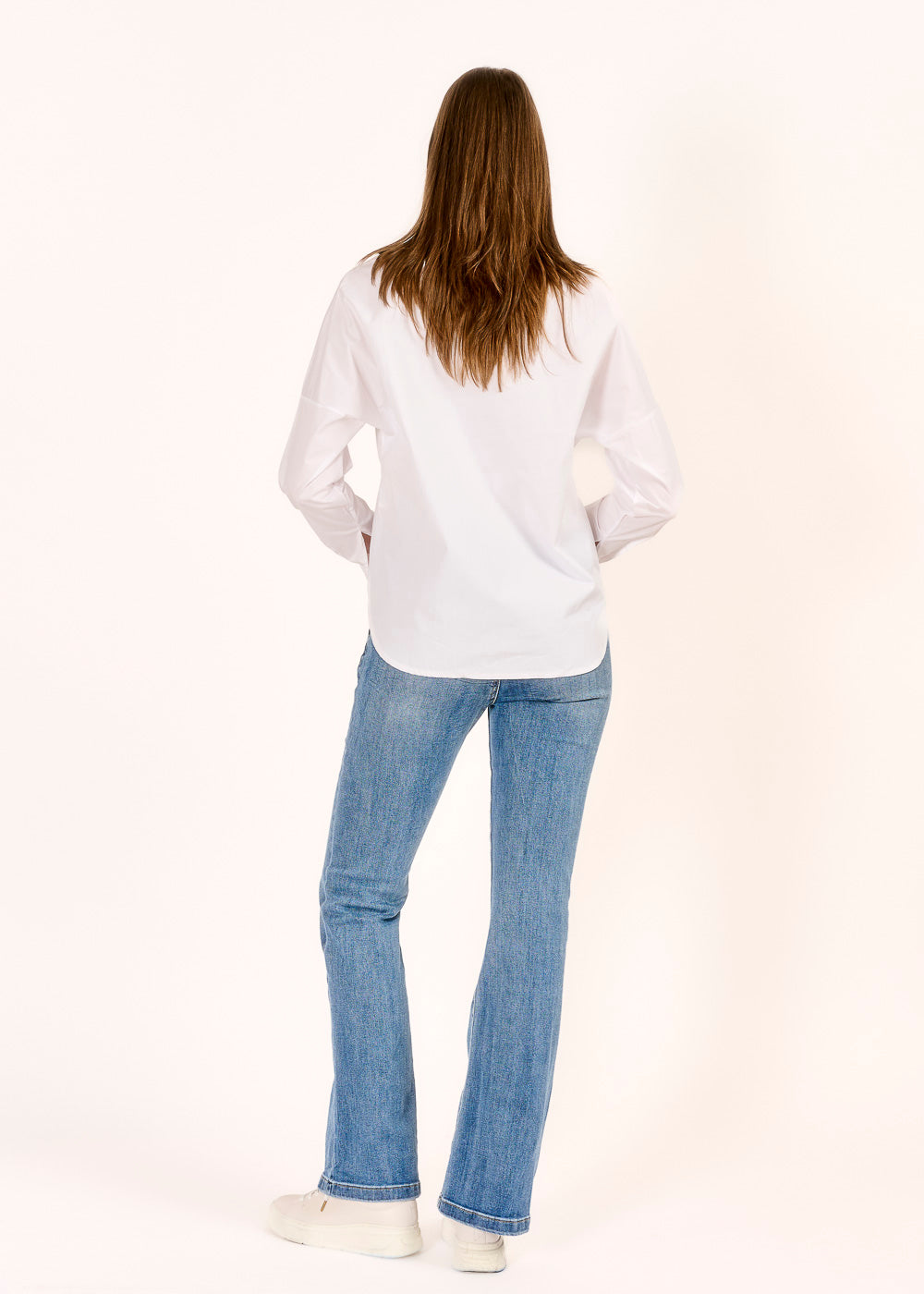 Diese weiße Bluse besticht durch ihre edle Papertouch-Qualität, die ihr eine außergewöhnlich glatte Haptik verleiht – so angenehm wie ein Blatt Papier. Der kleine Kragen und die verdeckte Knopfleiste sorgen für eine klare, zeitlose Optik. Ein vielseitiger Begleiter, der sowohl im Büro als auch zu besonderen Anlässen überzeugt.