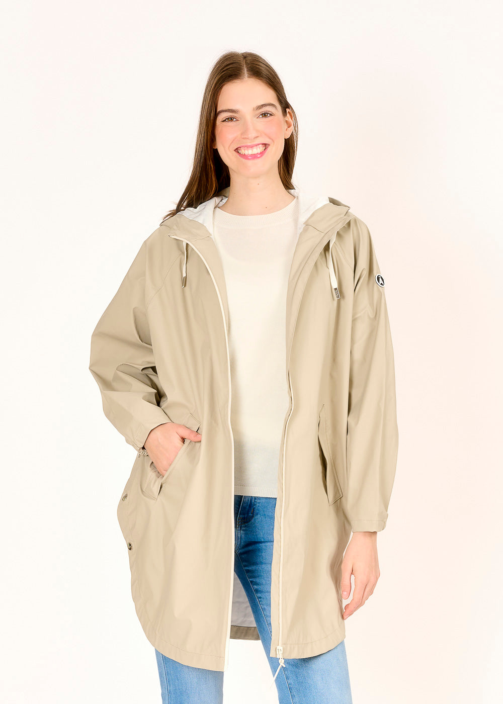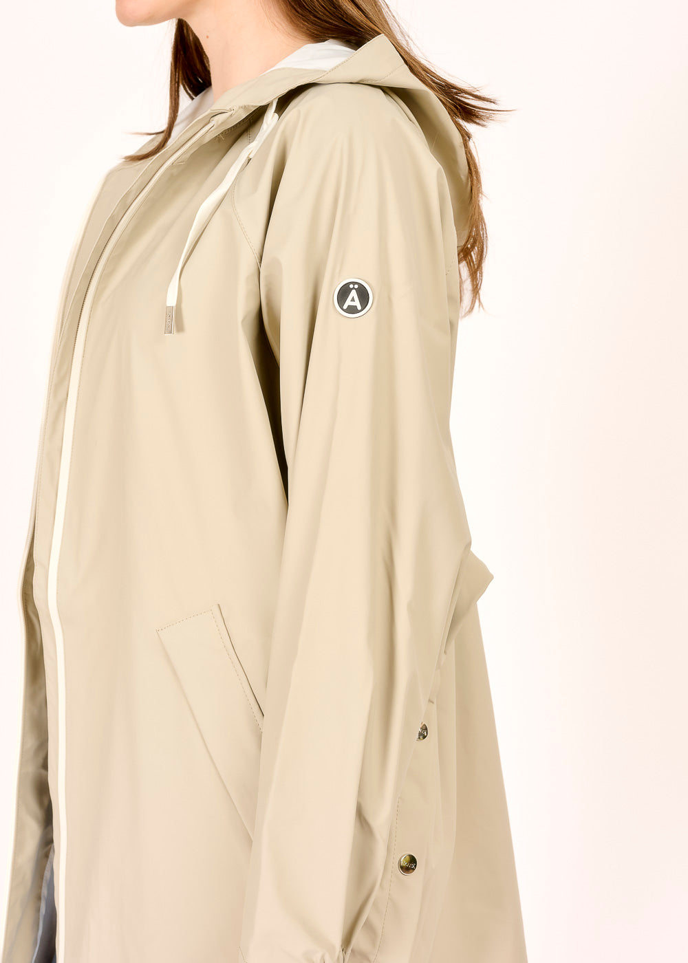Dieses Regencape in der modernen Farbe Taupe kombiniert Funktionalität mit stilvollem Design. Ausgestattet mit einer Kapuze und einem wasserdichten Reißverschluss bietet es optimalen Schutz bei unbeständigem Wetter. Seitliche Druckknöpfe sorgen für flexible Tragevarianten und zusätzlichen Komfort unterwegs.