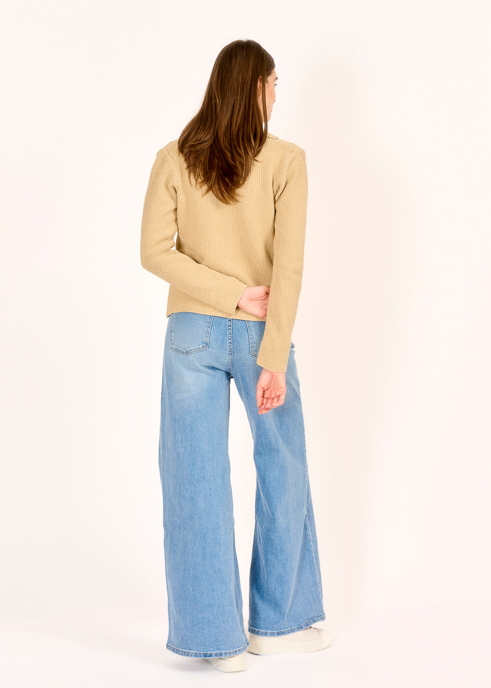 Dieser Strickblazer in der dezenten Farbe Beige ist ein zeitloser Begleiter für jede Gelegenheit. Gefertigt aus weichem Baumwollgarn, überzeugt er mit angenehmem Tragekomfort und einer perfekten Passform.