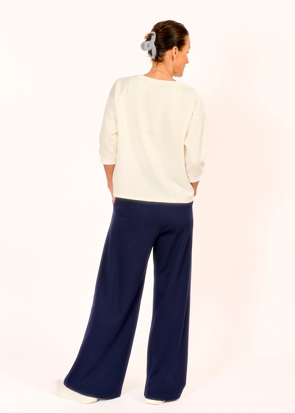 Diese Marlenehose in edlem Blu Scuro begeistert mit ihrem weiten Bein und einem fließenden Fall. Der elegante Schnitt zaubert eine schmeichelhafte Silhouette und sorgt für einen stilvollen Auftritt. Ob im Büro oder in der Freizeit – diese Hose verbindet Komfort mit zeitloser Eleganz.