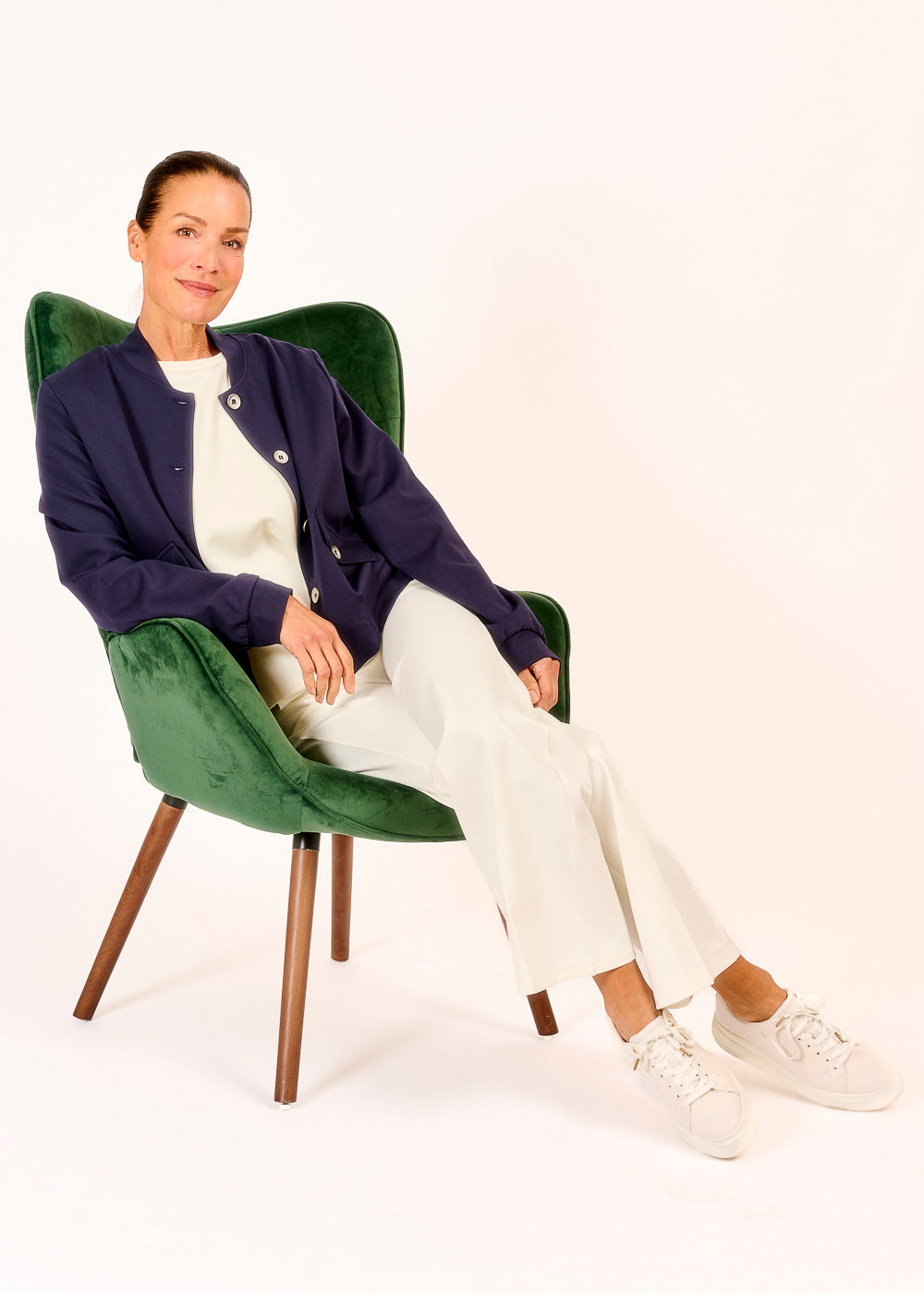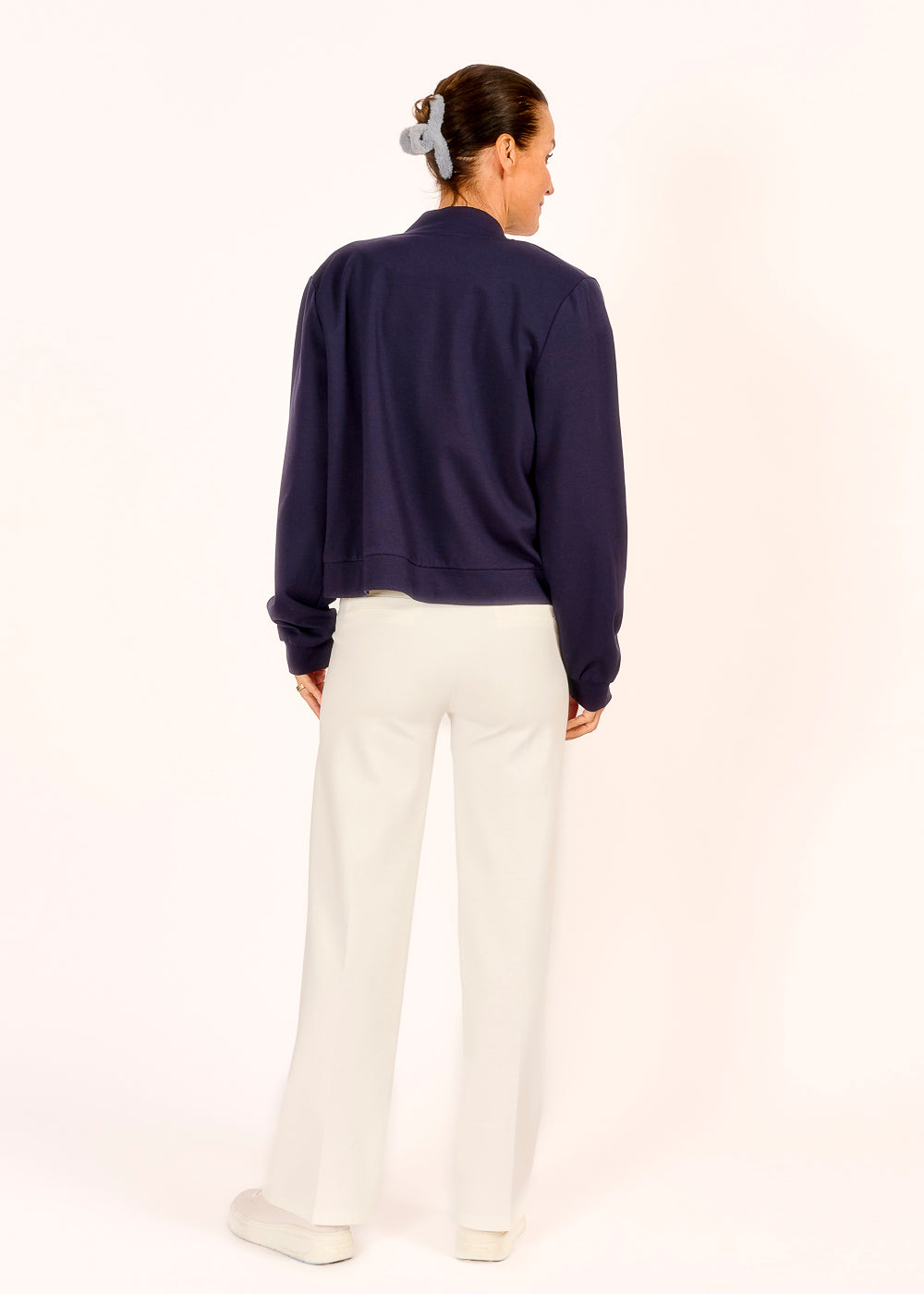 Das Bomberino in der Farbe Blu Scuro setzt ein klares Fashion-Statement mit seinem modernen, kurz geschnittenen Design. Der hochwertige Stoff und die stilvollen Details verleihen dem Look eine perfekte Balance zwischen urbanem Chic und zeitloser Eleganz. Ein absolutes Must-have für jeden modebewussten Trendsetter!