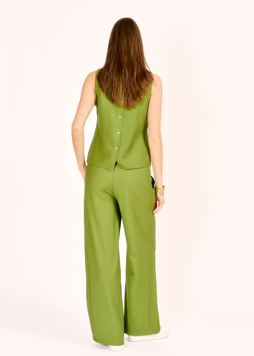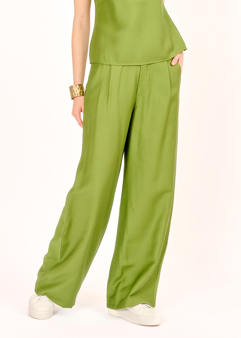 Diese lässige Hose in einem trendigen Verde mit weitem Bein sorgt für ein bequemes Tragegefühl und einen stylischen Look, der sich perfekt für jede Gelegenheit eignet. Kombinieren Sie sie mit dem passenden Top oder Hemd für ein harmonisches Outfit, das Ihre individuelle Note unterstreicht!
