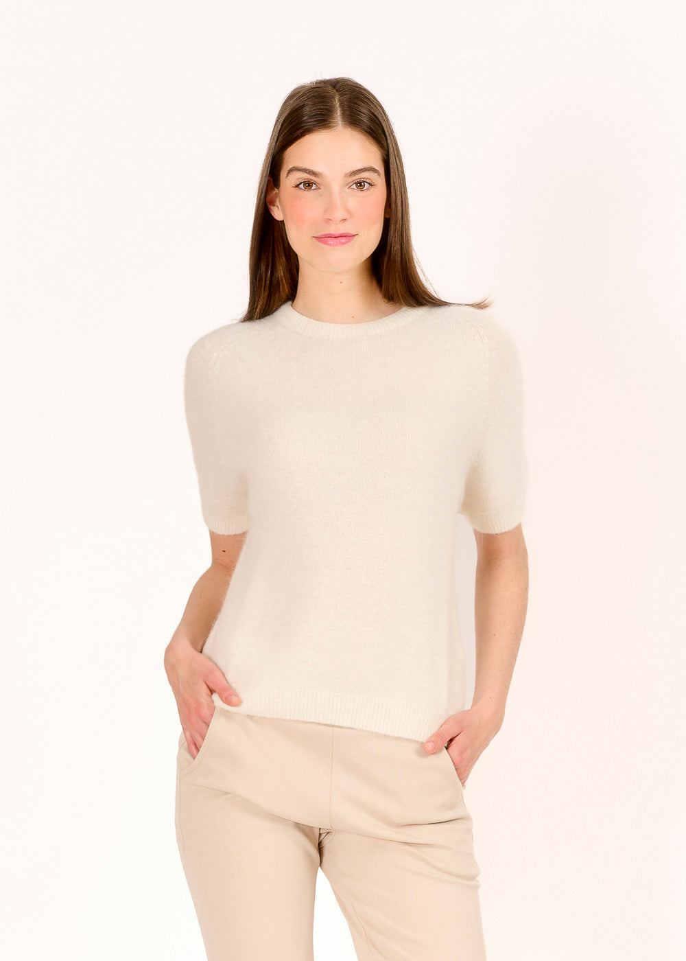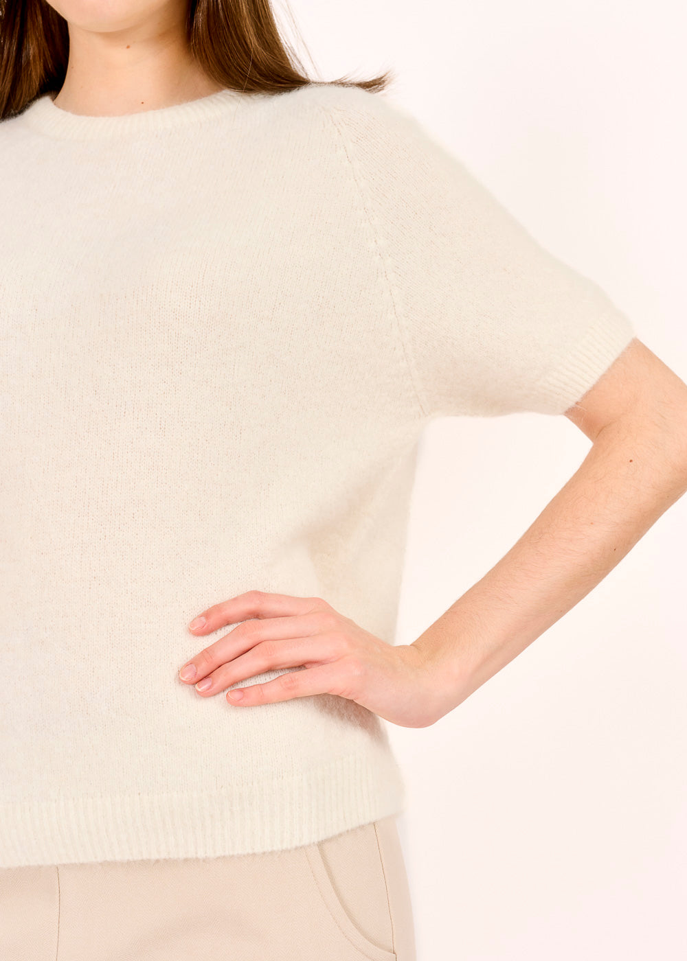 Erlebe ultimativen Komfort mit unserem Panna Pullover! Aus einem luxuriösen Baby-Alpaka-Mix gefertigt, bietet dieser Rundhalspullover mit kurzen Ärmeln nicht nur unübertroffenen Komfort, sondern auch zeitlose Eleganz. Die hochwertige Verarbeitung und die subtile Panna-Farbe machen ihn zum Herzstück jeder Garderobe. Perfekt für jede Jahreszeit und vielseitig kombinierbar – von eleganten Looks bis hin zu lässigen Outfits.
