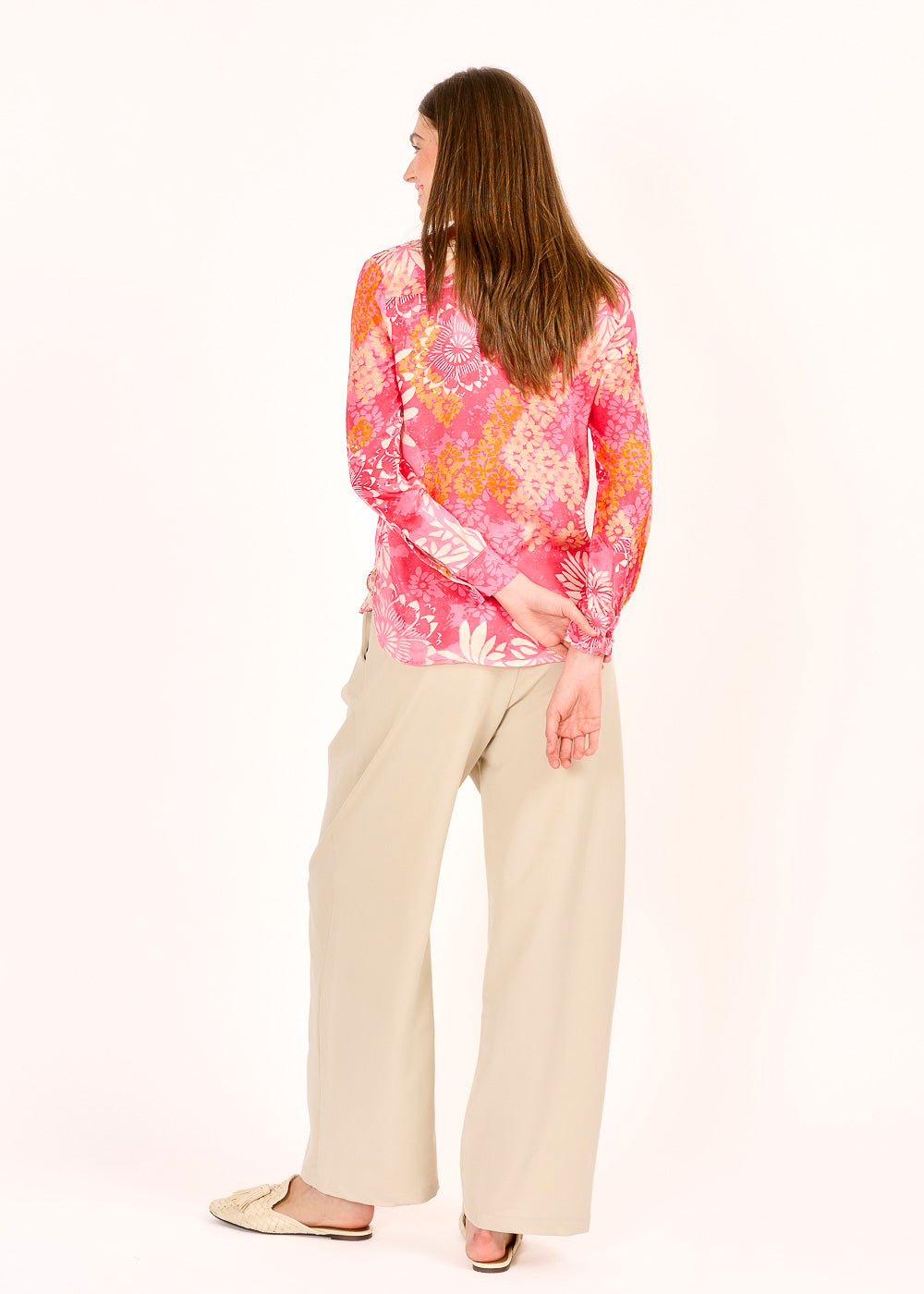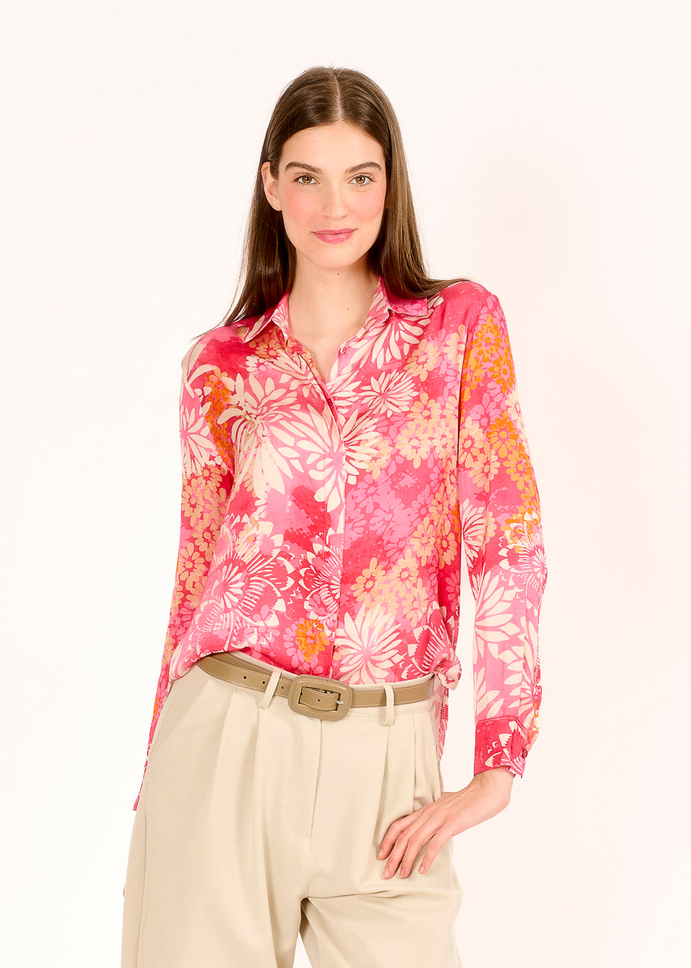 Diese Viskosebluse in der Farbe Rosso begeistert mit ihrem fröhlichen, leicht sommerlichen Muster und sorgt für einen stilvollen Hingucker. Die verdeckte Knopfleiste verleiht ihr eine elegante Note, während der fließende Stoff für ein angenehmes Tragegefühl sorgt. Perfekt für vielseitige Looks, die Frische und Leichtigkeit ausstrahlen.