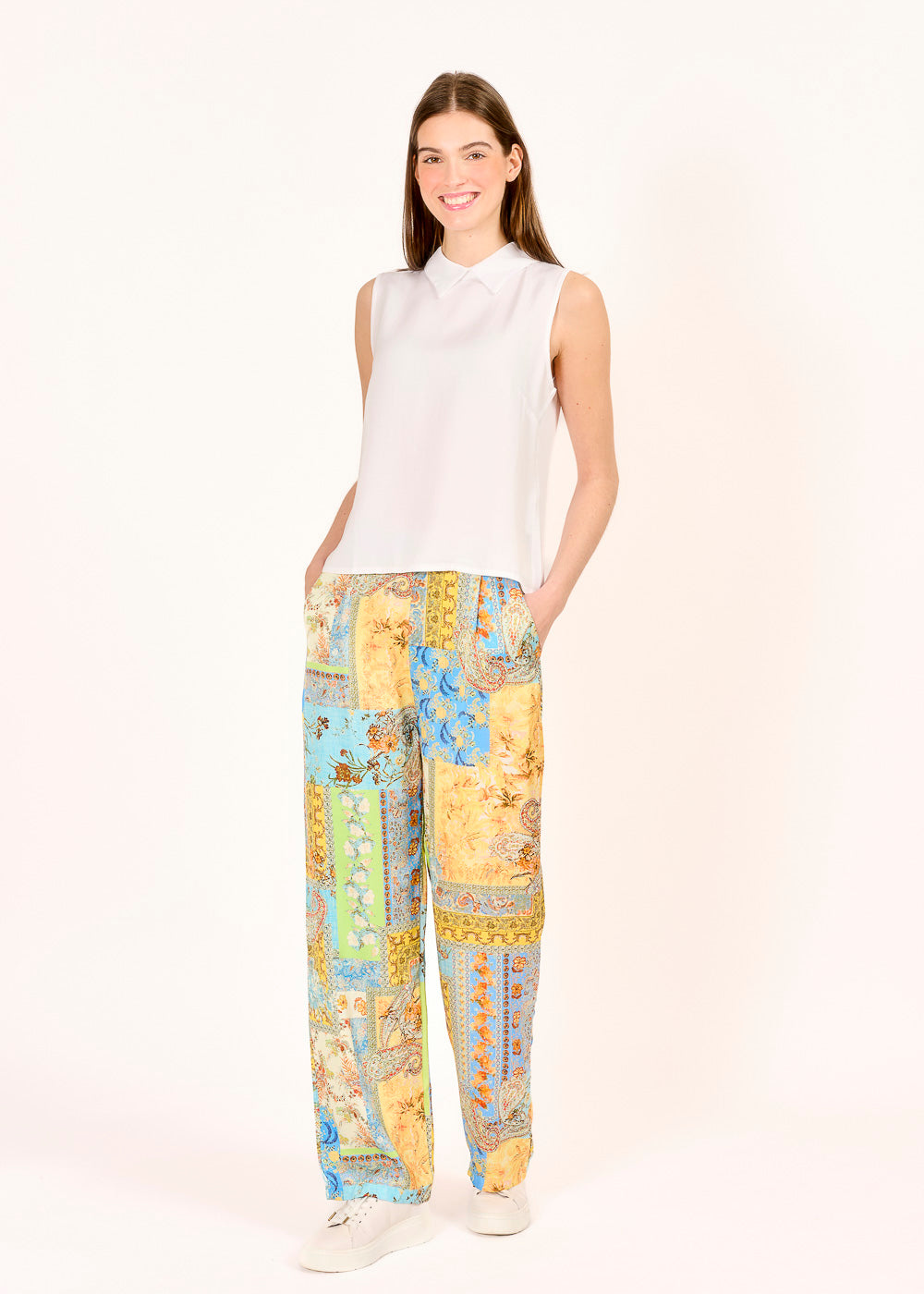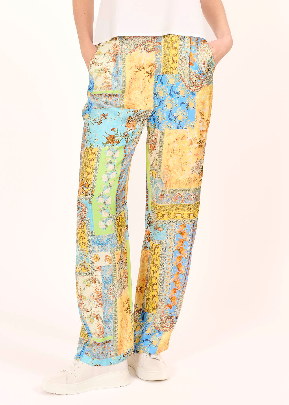 Diese bedruckte Hose beeindruckt mit einem edlen Muster, das jedem Outfit eine elegante Note verleiht. Der gerade Schnitt und die kleinen Eingriffstaschen sorgen für eine schmeichelhafte Silhouette und praktischen Komfort. Vervollständigt wird das Design durch eine dezente Falte vorne, die der Hose zusätzlichen Charme verleiht.