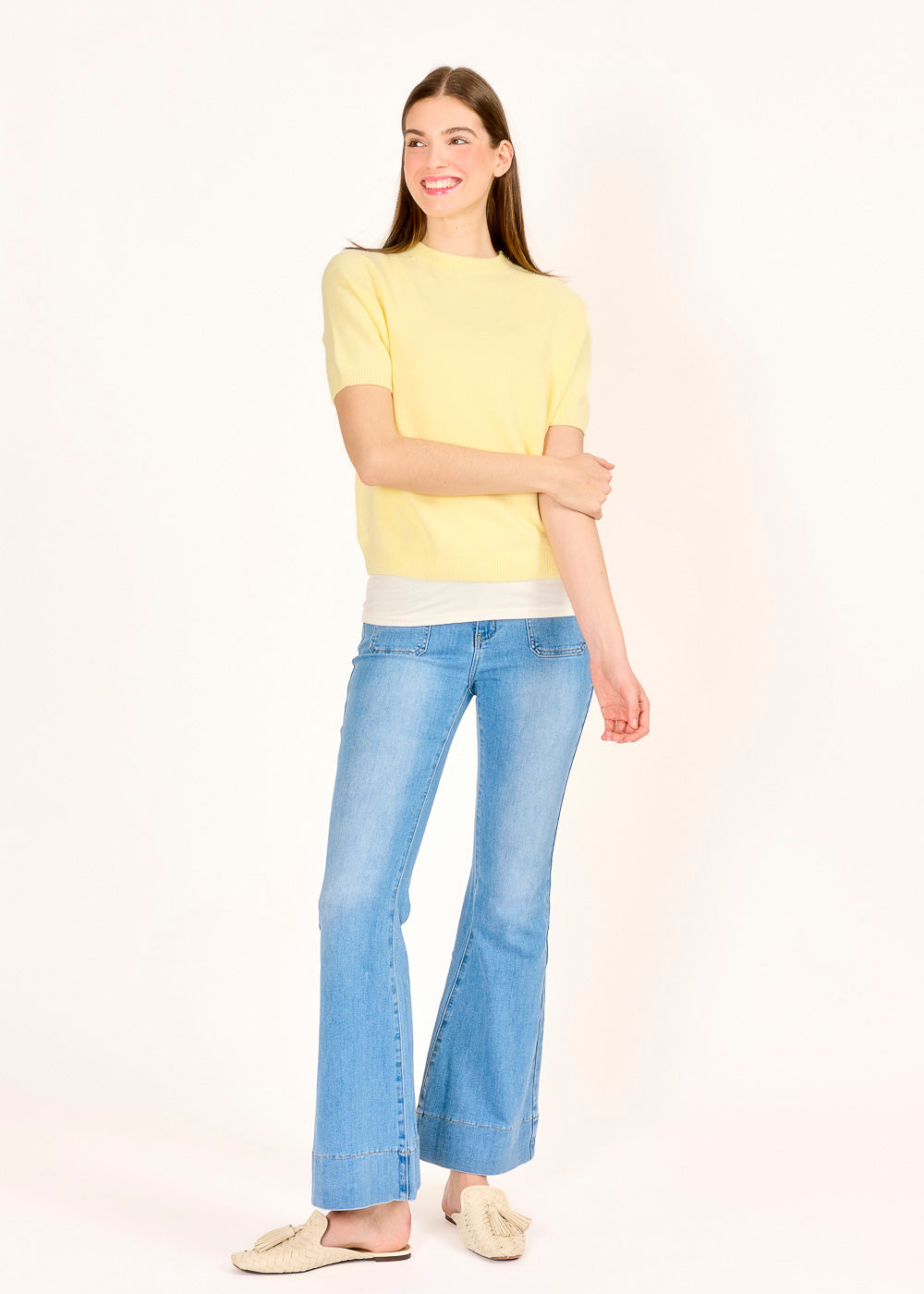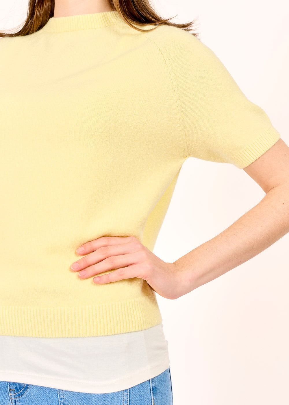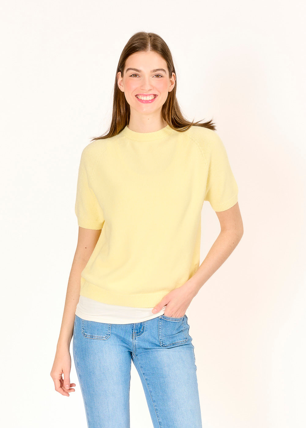 Dieser Halbarm-Pullover aus einer komfortablen Viskosemischung besticht durch seine leichte gelbe Farbe, die sofort für einen frischen, sommerlichen Look sorgt. Der weiche Stoff bietet ein angenehmes Tragegefühl und macht ihn zum perfekten Begleiter für warme Tage.