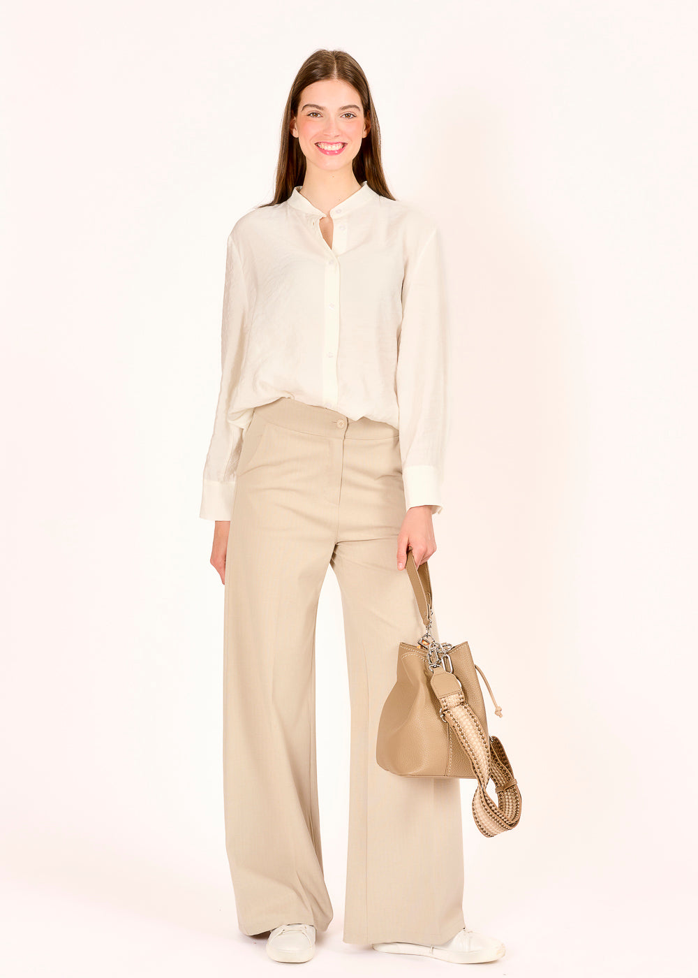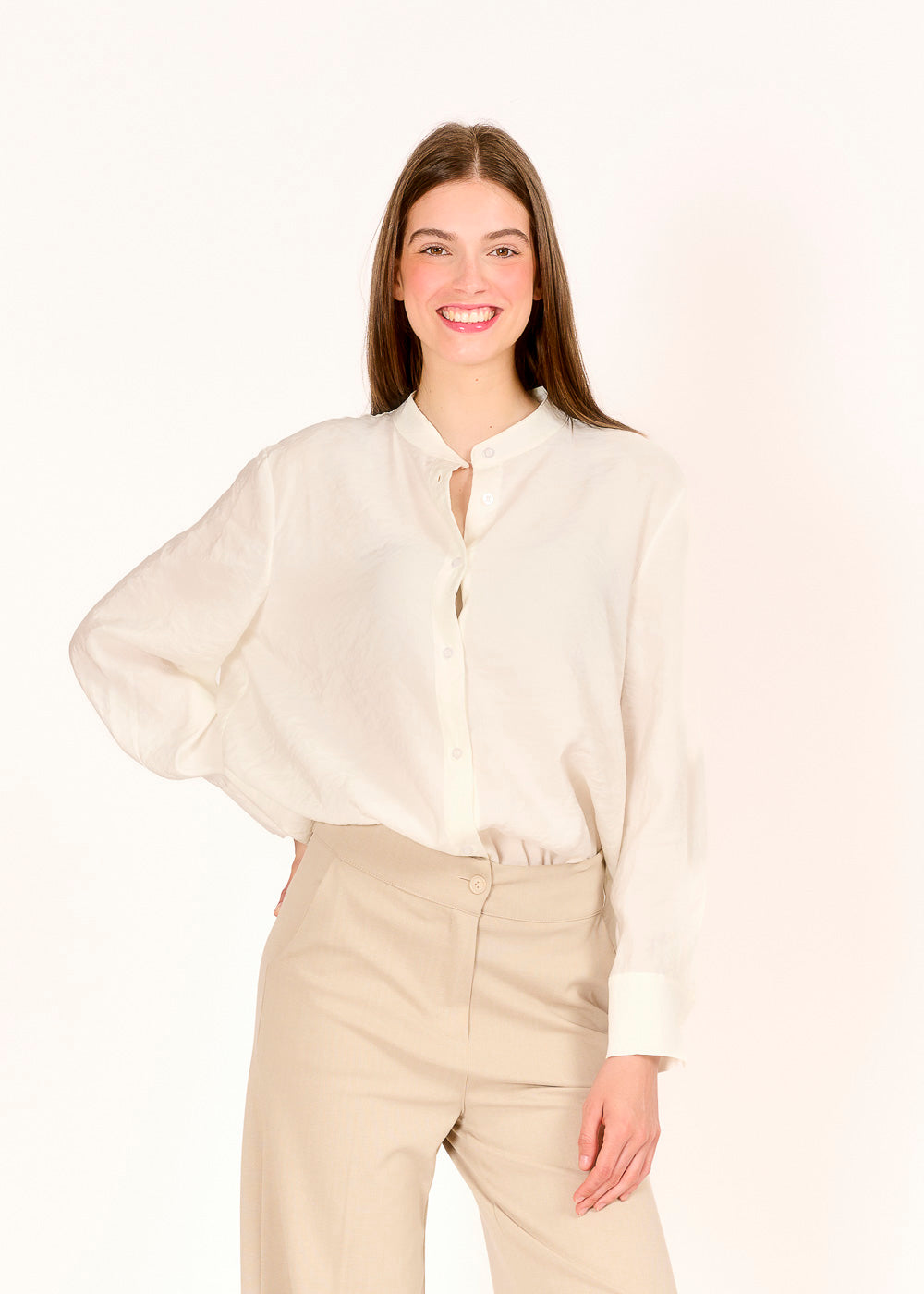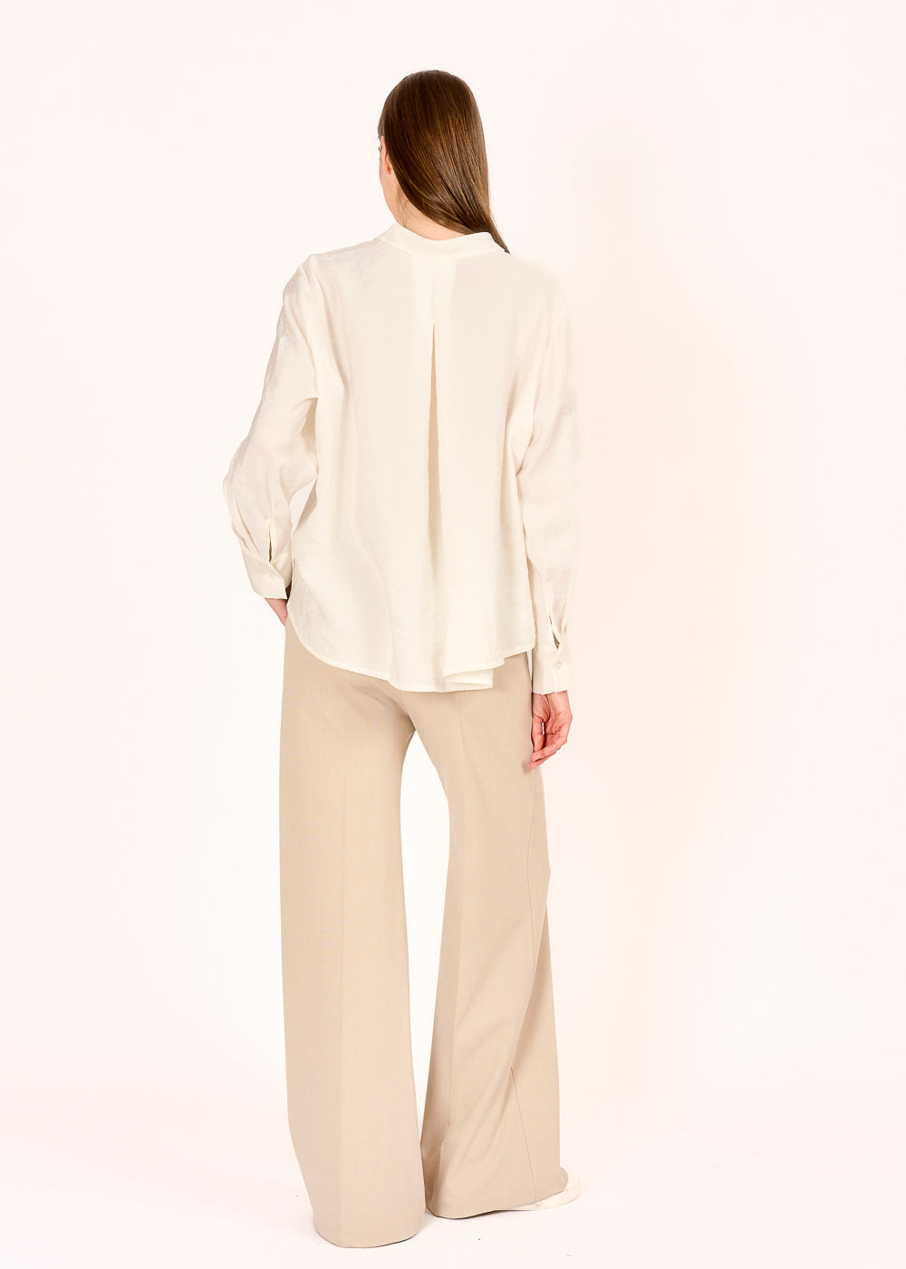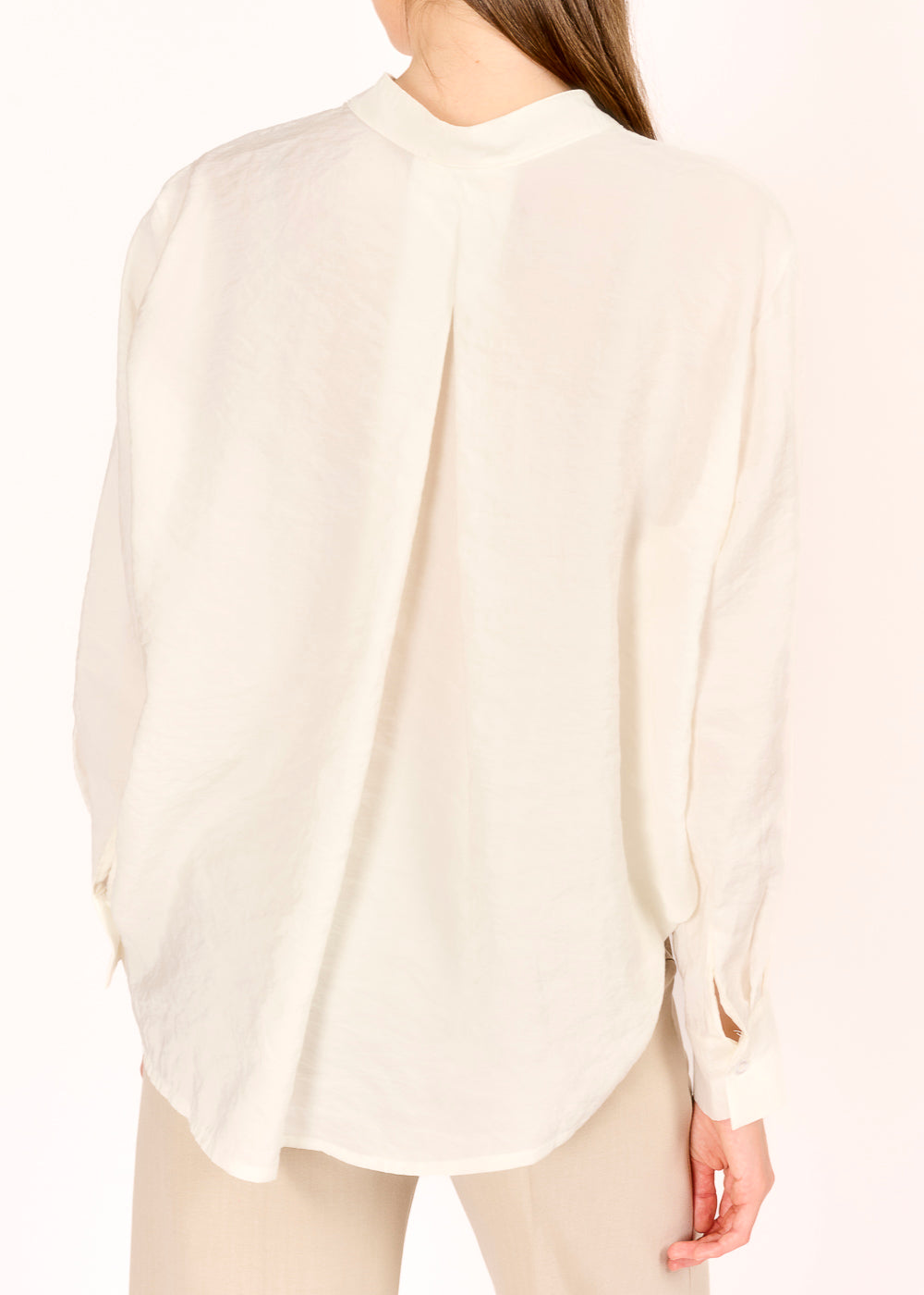 Dieses weiße Blusenhemd vereint zeitlose Eleganz mit einem modernen Twist. Die durchgehende Falte auf der Rückseite zieht sich bis in den Halsausschnitt und sorgt für eine besondere, leicht ausgestellte Silhouette mit stilvollem Volumen. Ein vielseitiger Klassiker, der jedem Look eine edle Note verleiht.