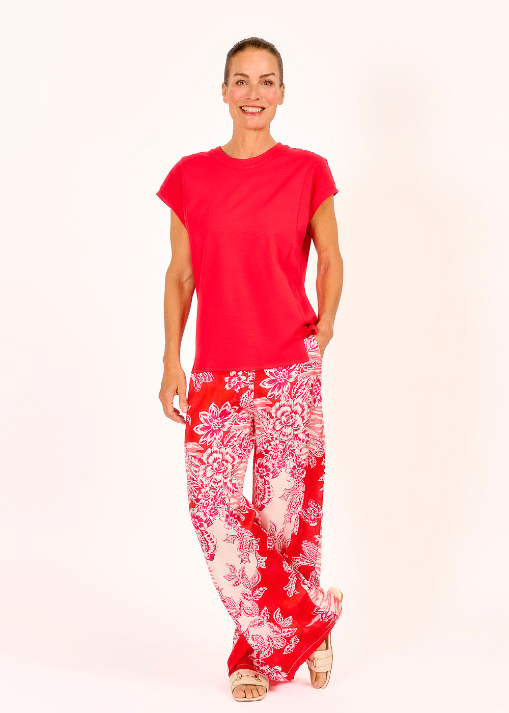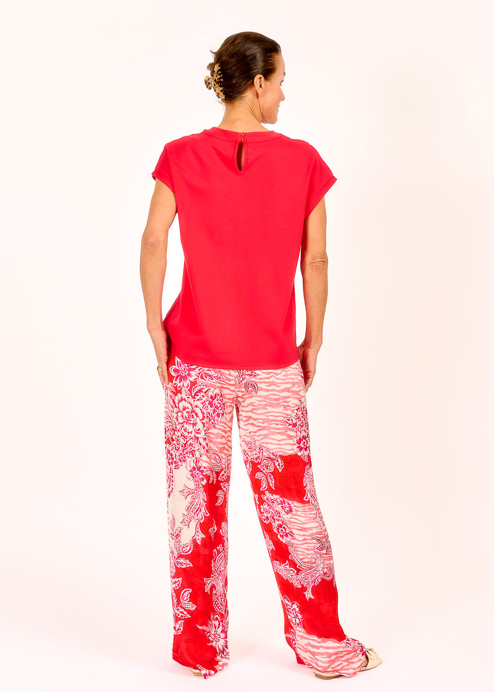 Dieses Shirt in der leuchtenden Farbe Rosso bringt frische Energie in deine Garderobe. Kurze Flügelärmel und kleine Schlitze am vorderen Saum sorgen für eine feminine und luftige Silhouette. Hinten runden zwei zarte Knöpfe das Design charmant ab und setzen einen dezenten Akzent.