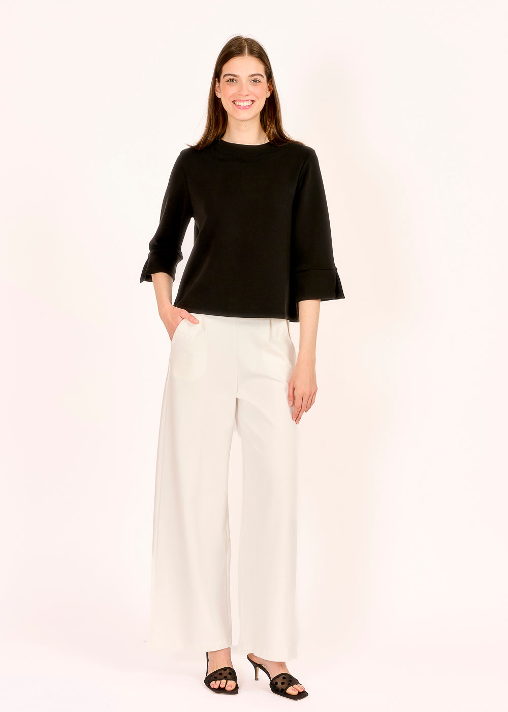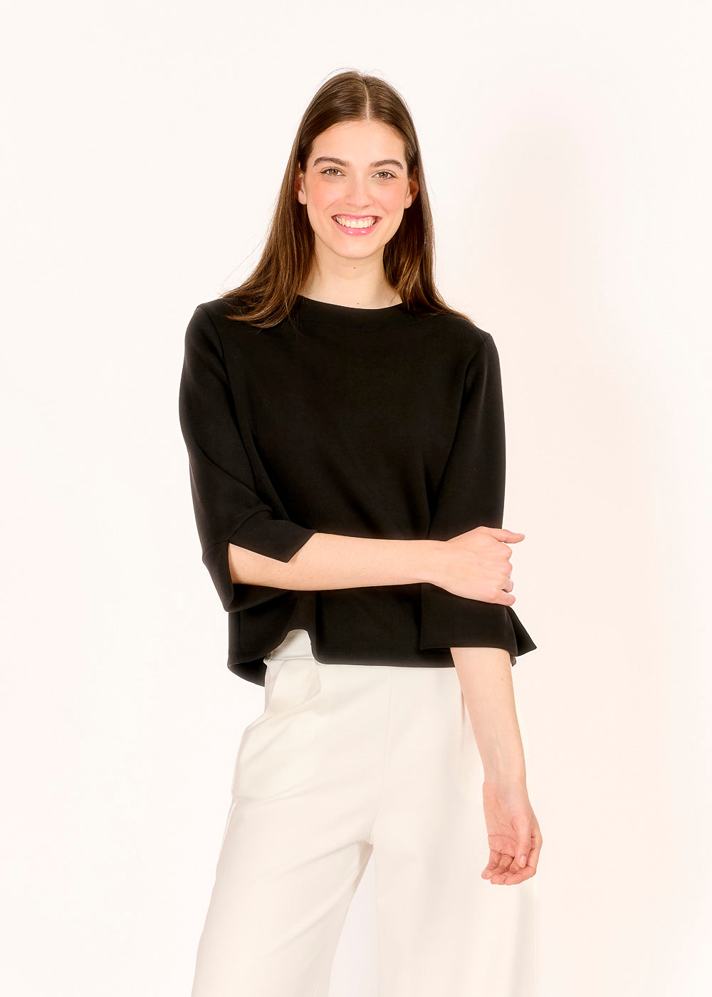 Dieses Kastenshirt in klassischem Nero begeistert mit seinem soften Griff und dem lässigen A-Shape. Der Schlitz auf der Rückseite verleiht dem Design eine moderne, luftige Note.
