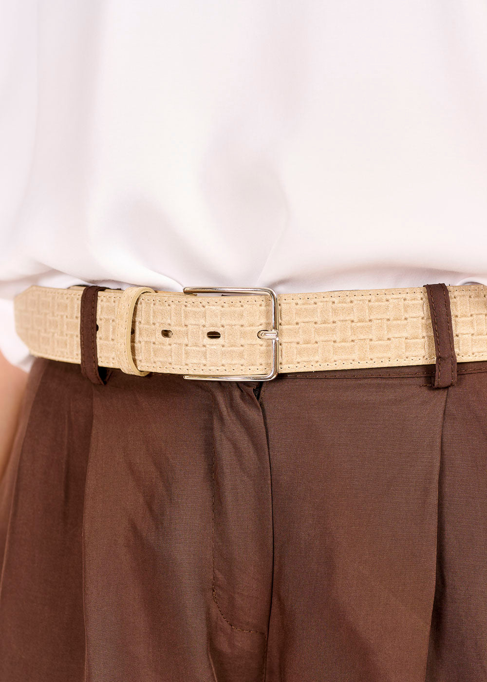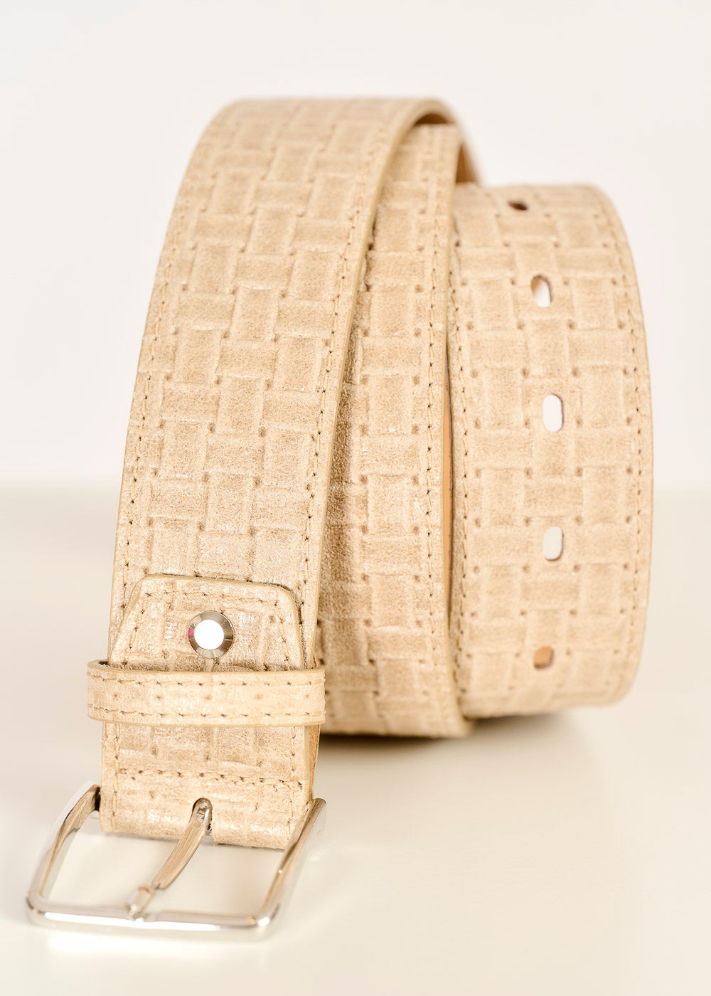 Dieser elegant geflochtene Gürtel in einem warmen Beigeton ist ein vielseitiges Accessoire, das jedem Outfit Struktur und Stil verleiht. Das feine Flechtmuster und die dezente Metallschnalle machen ihn zu einem zeitlosen Begleiter für unterschiedlichste Looks. Ob zu Jeans, Stoffhosen oder Kleidern – dieser Gürtel ergänzt Ihre Garderobe perfekt.